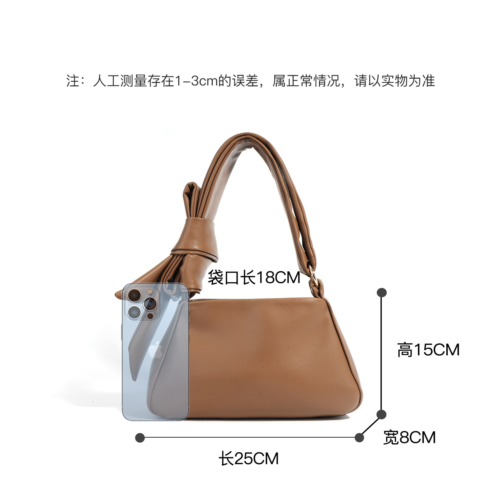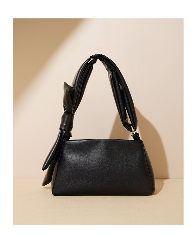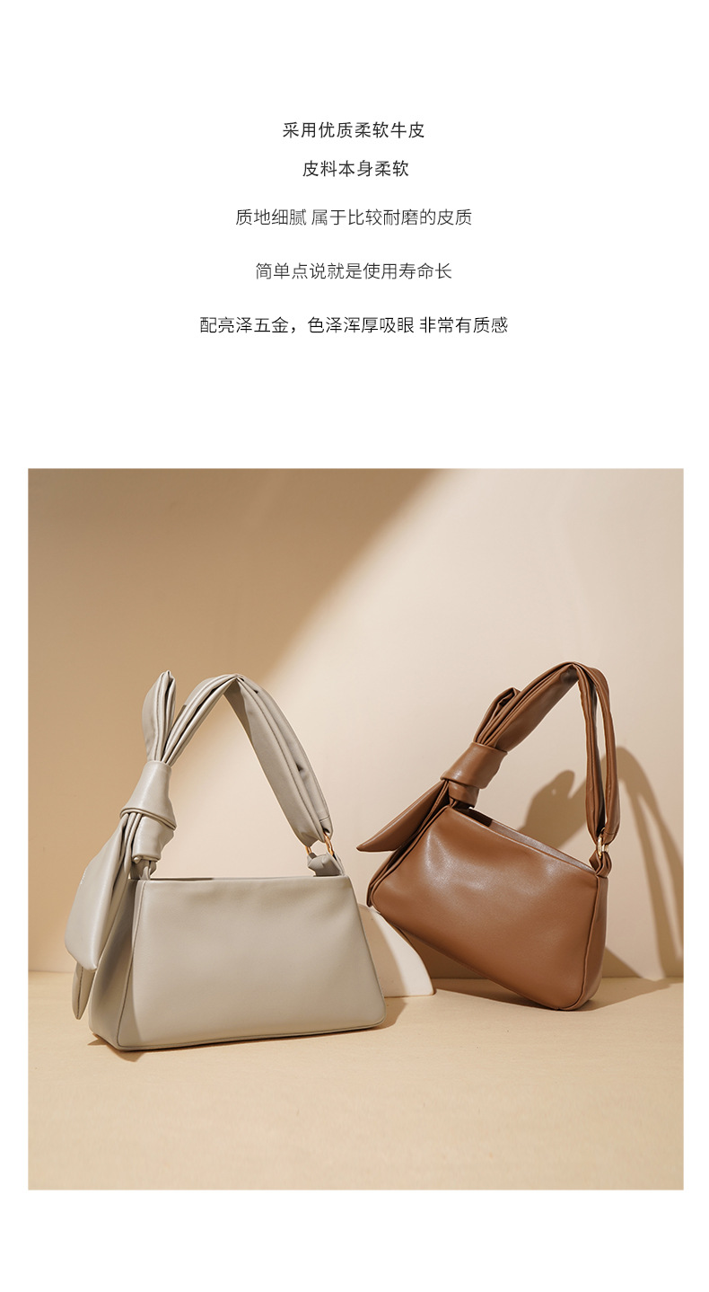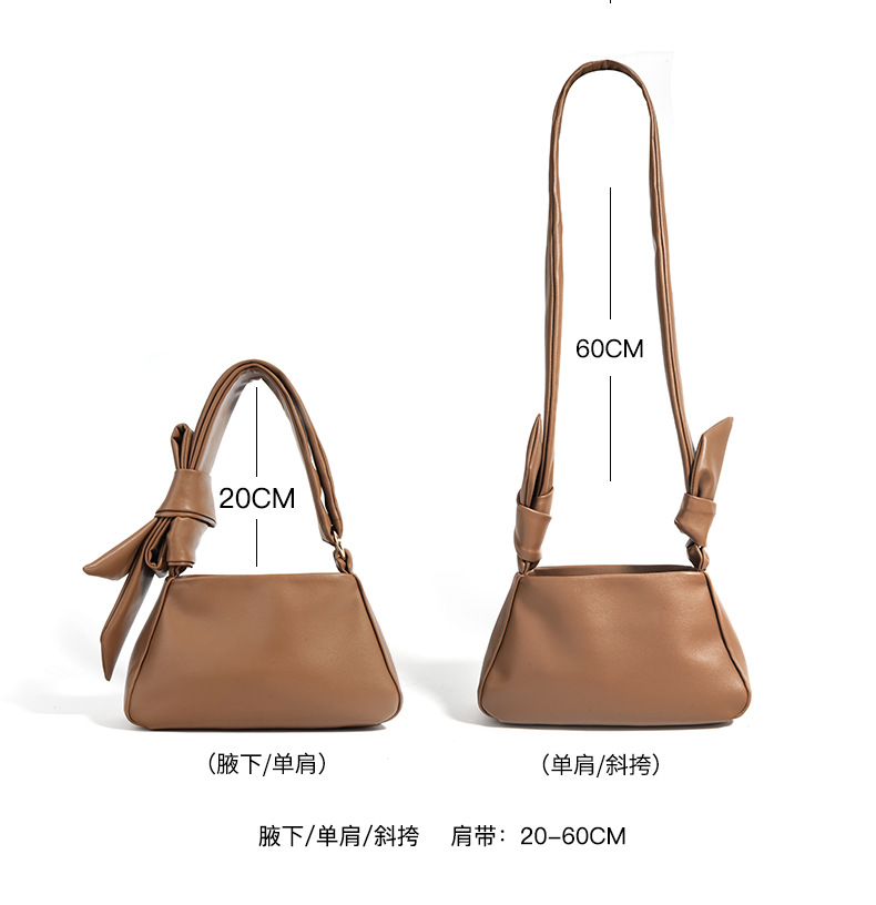A unique blend of Korean fashion and niche design, this pleated genuine leather crossbody bag features a bow-tie detail and compact size. Perfect for casual outings or travel.