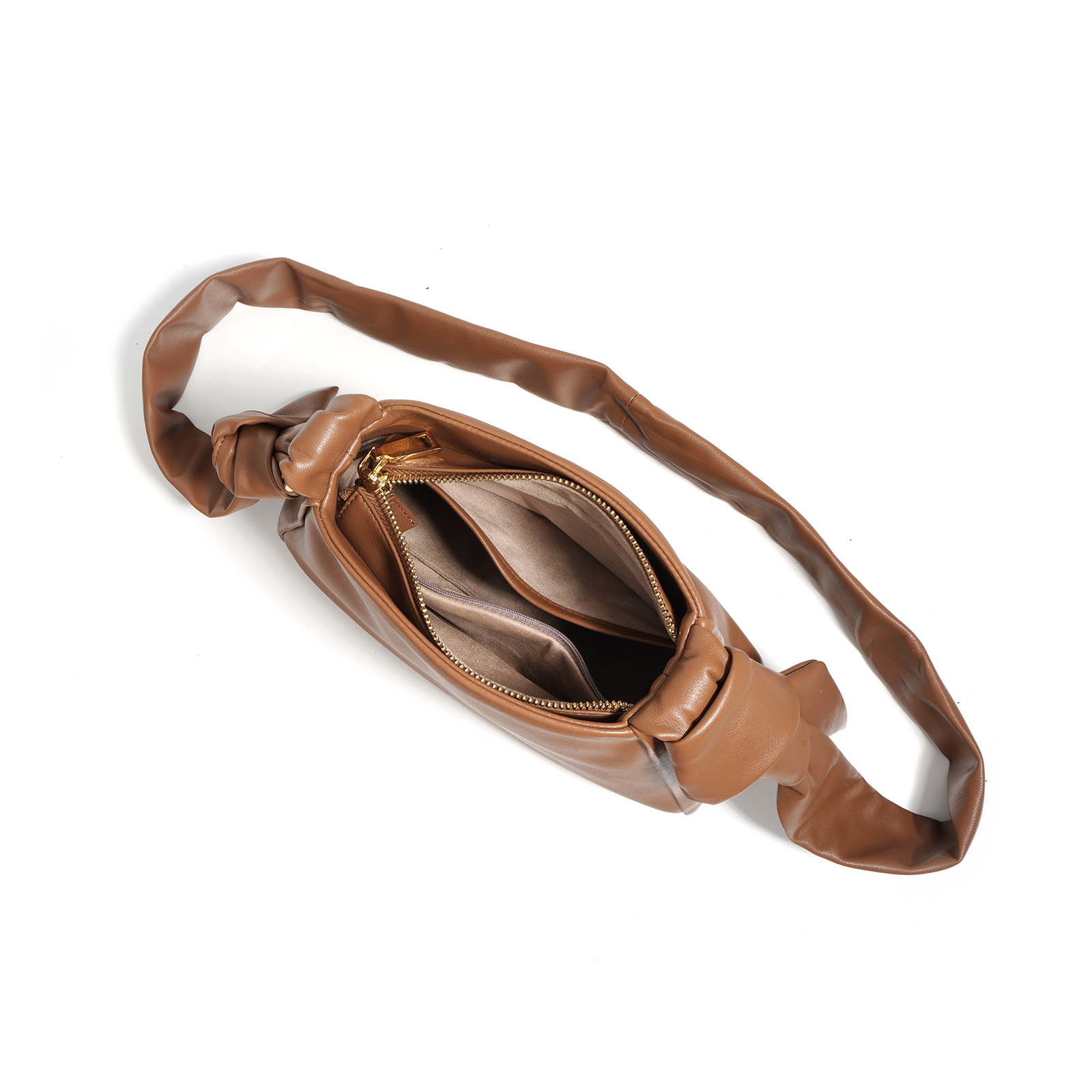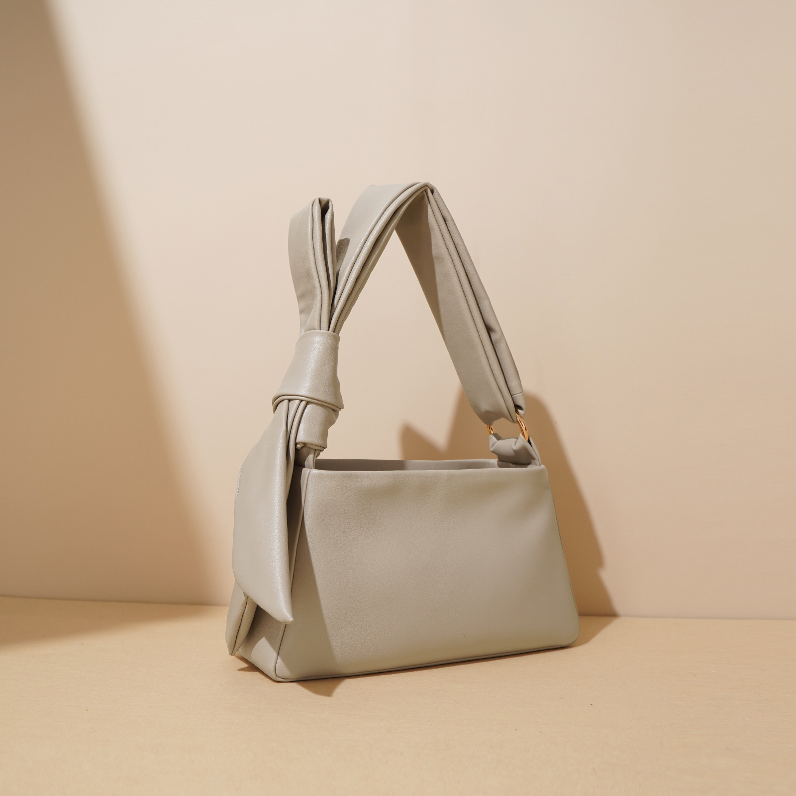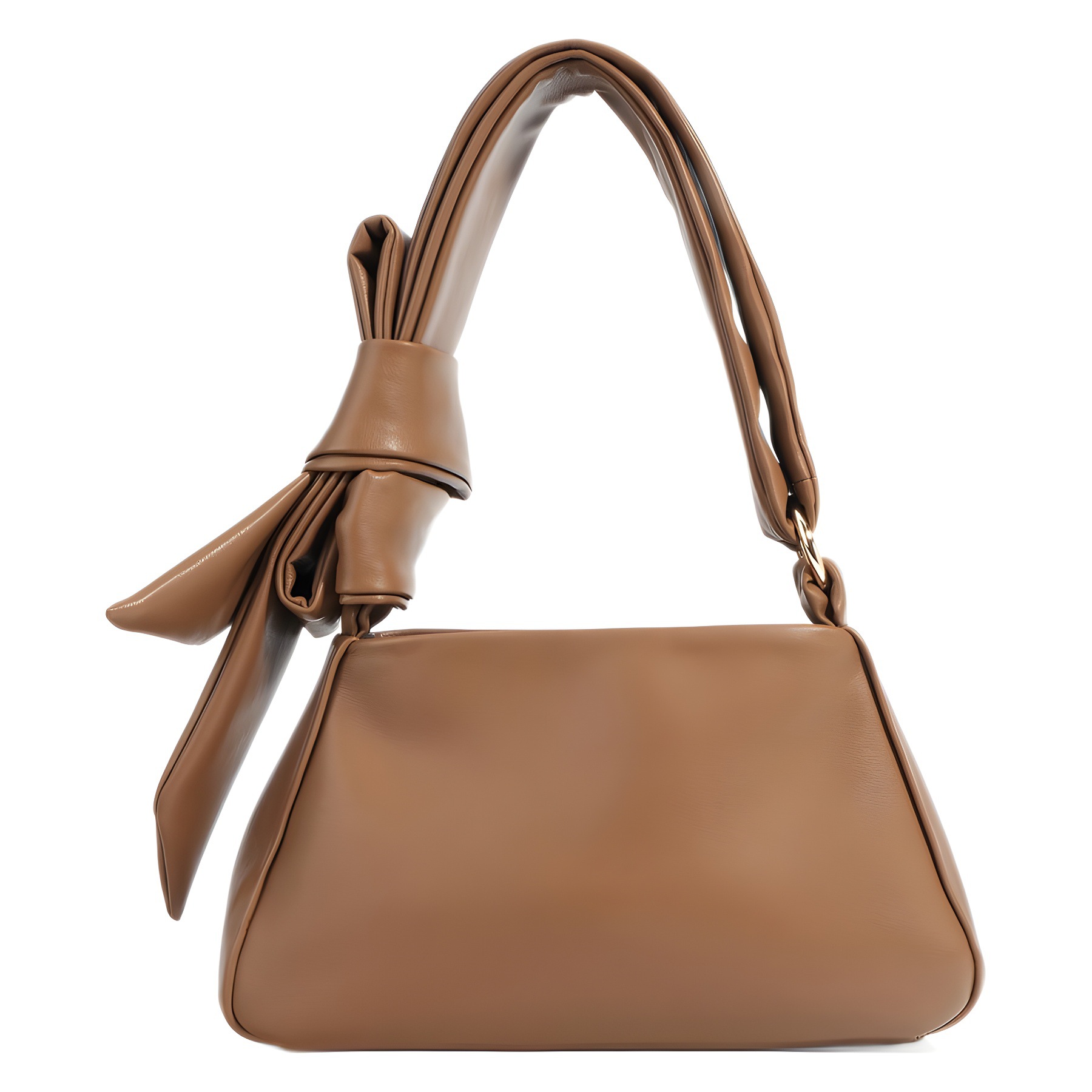 Pleated Bow-Tie Genuine Leather Crossbody Bag