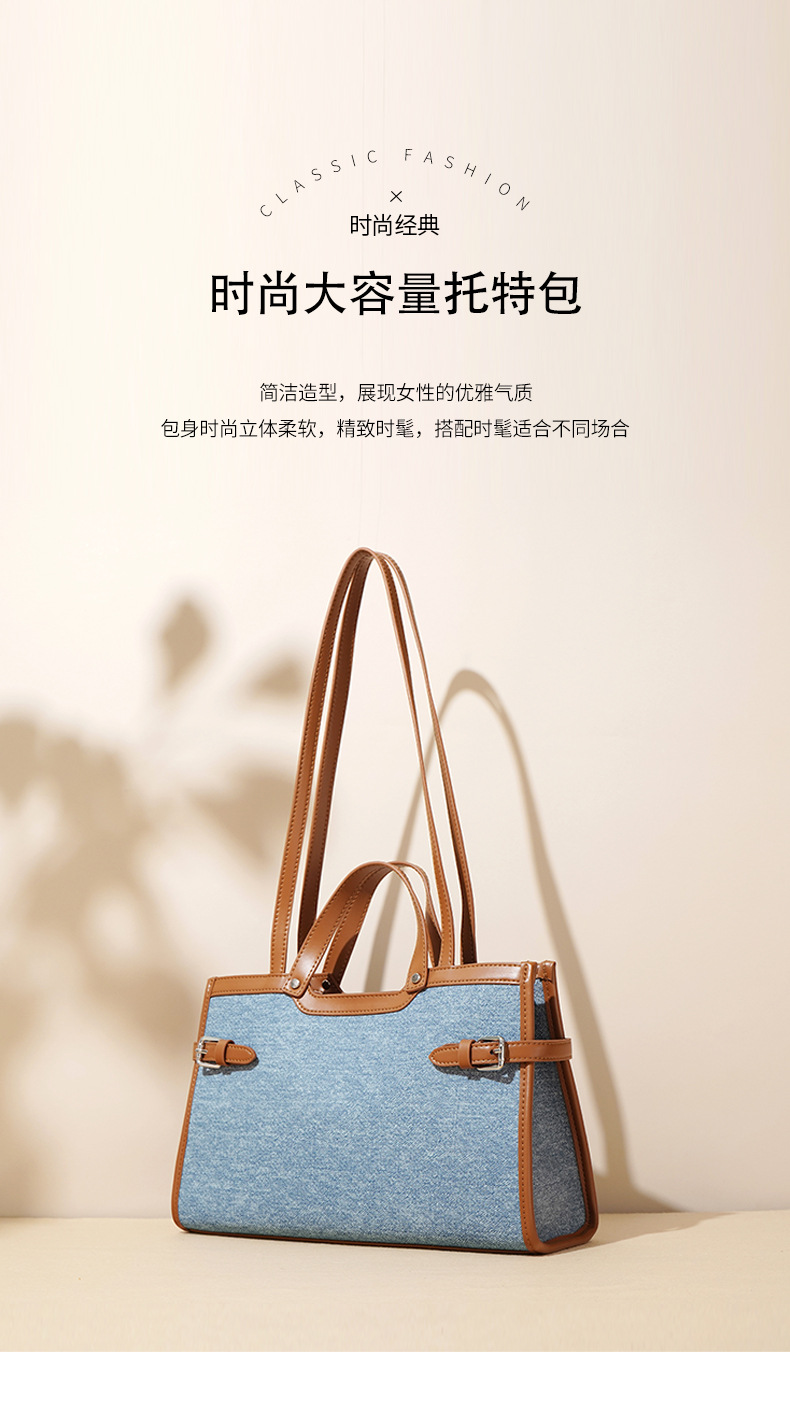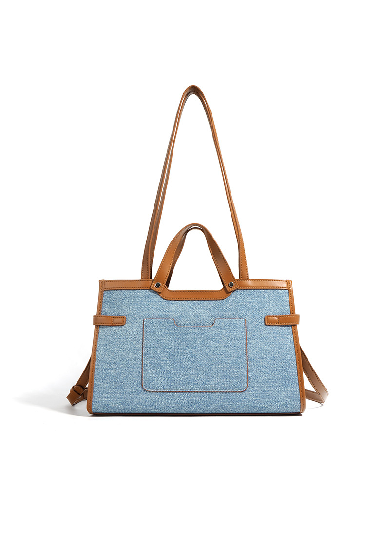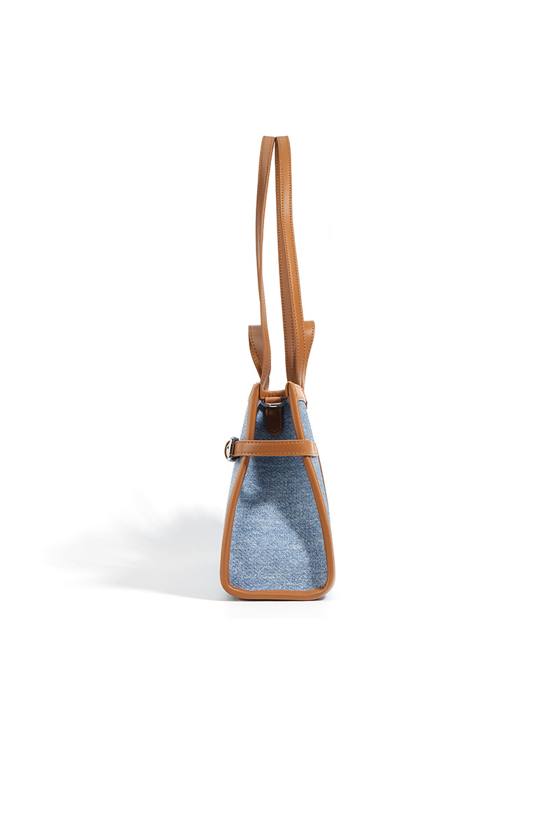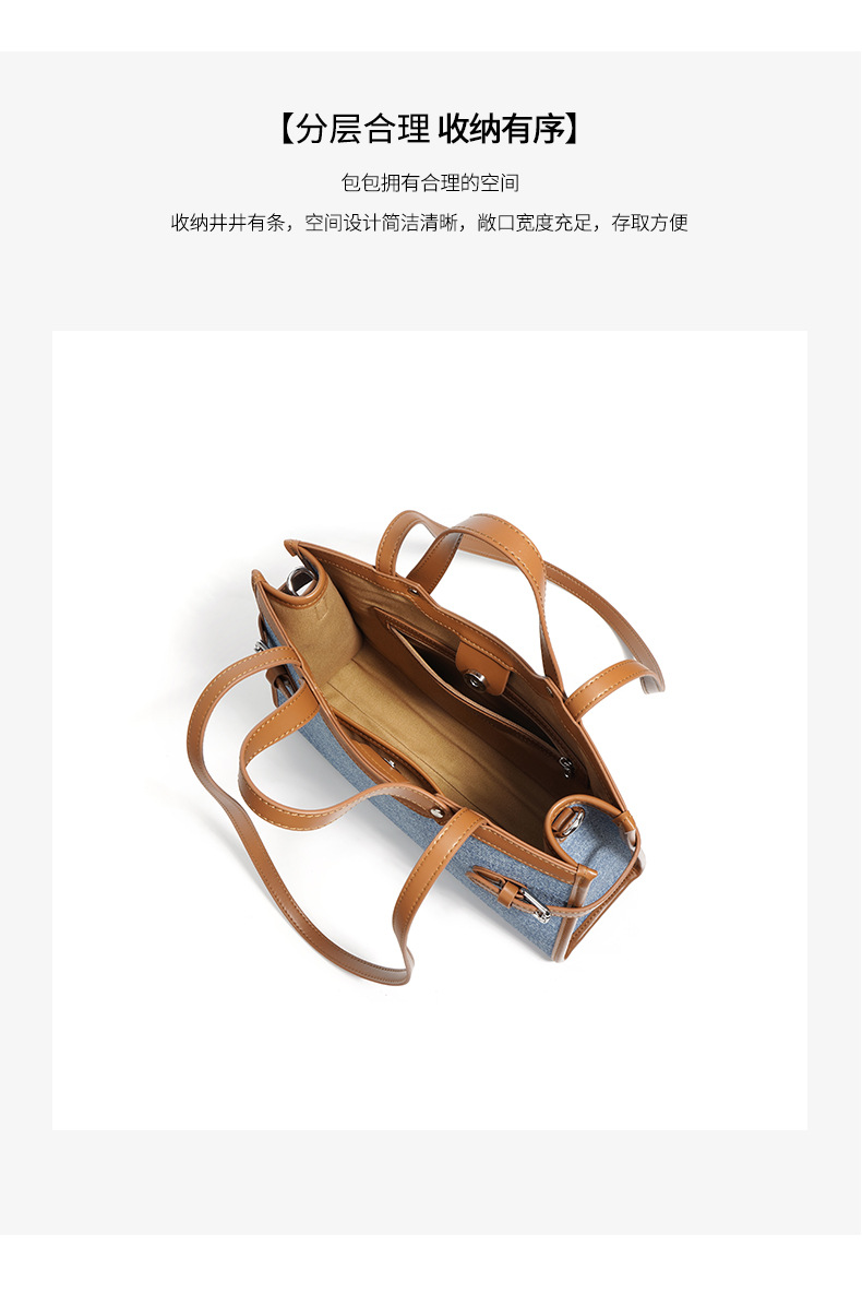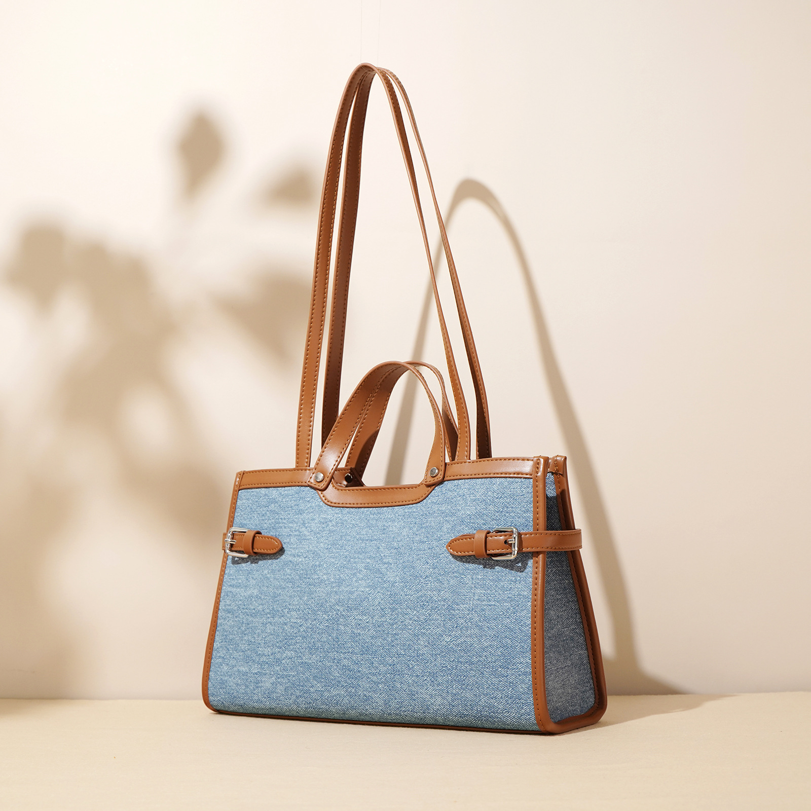 A stylish fusion of denim and genuine leather, this underarm tote offers large capacity and versatile styling. Perfect for commuting, travel, or daily errands.