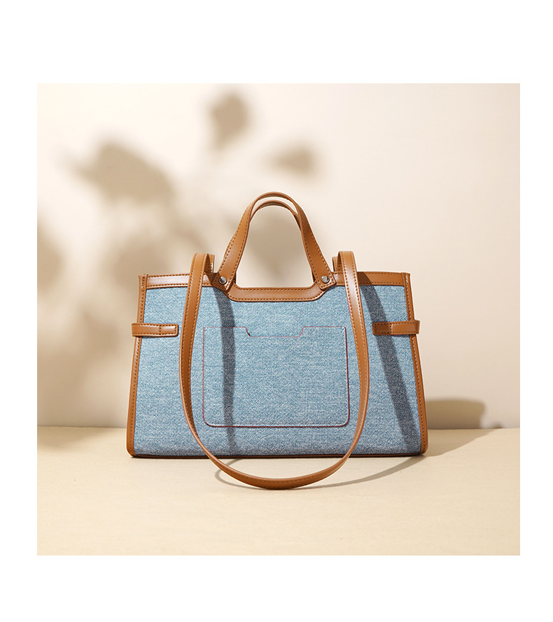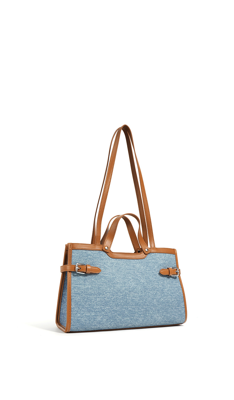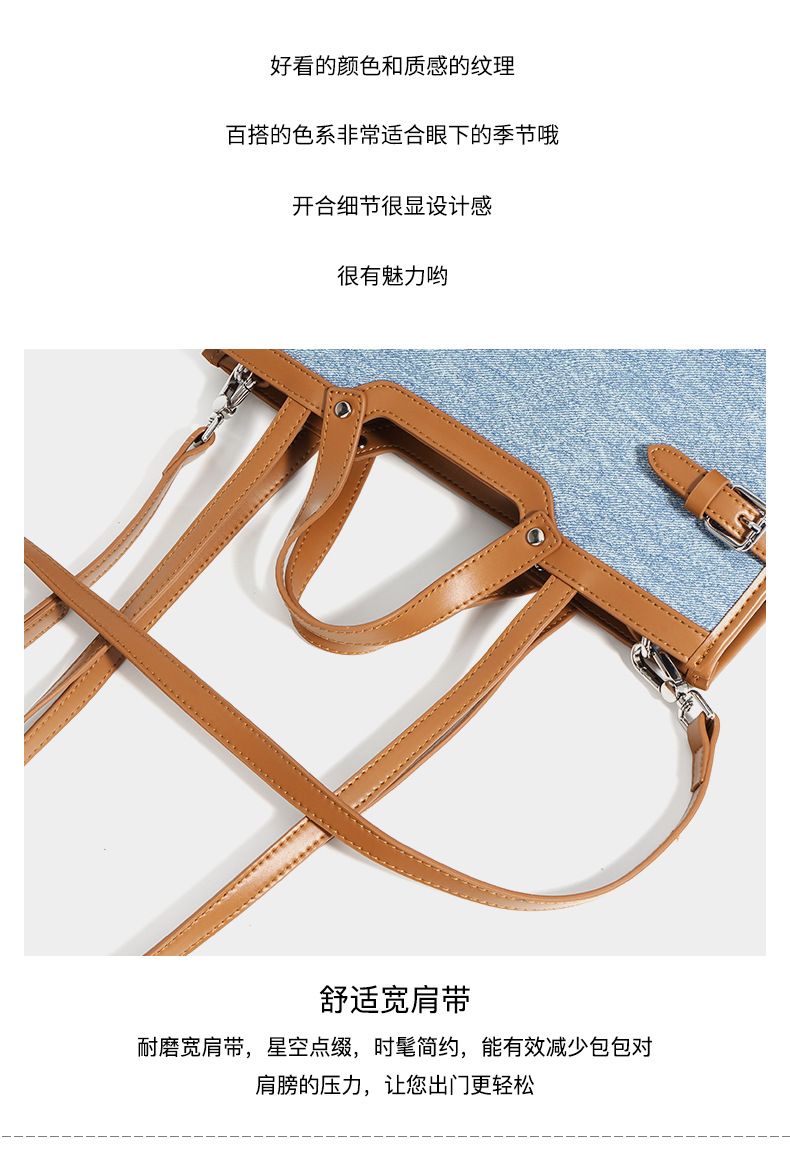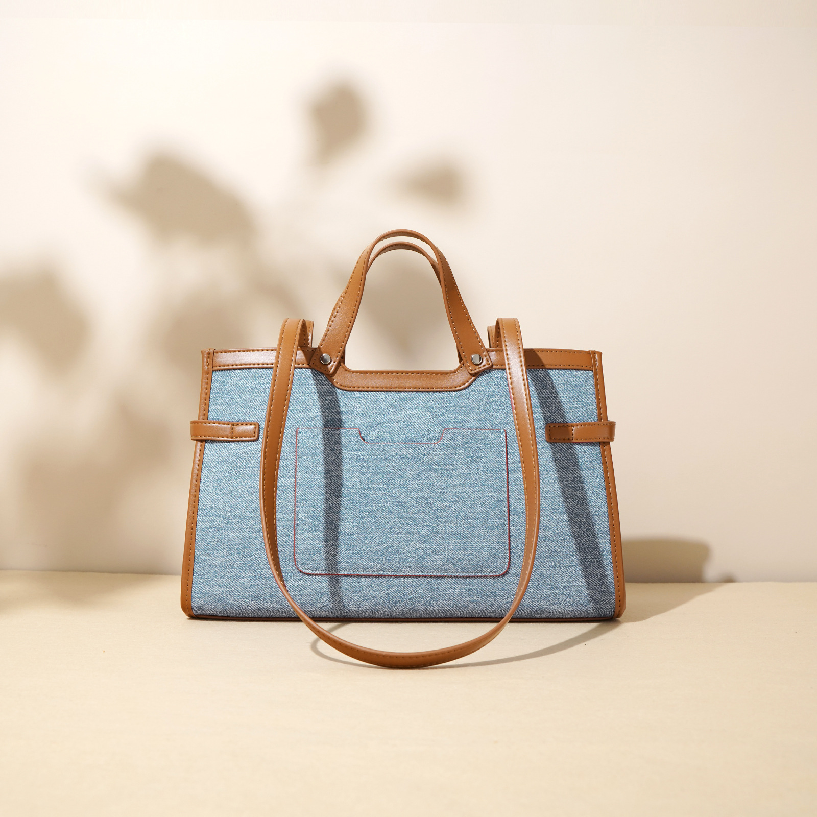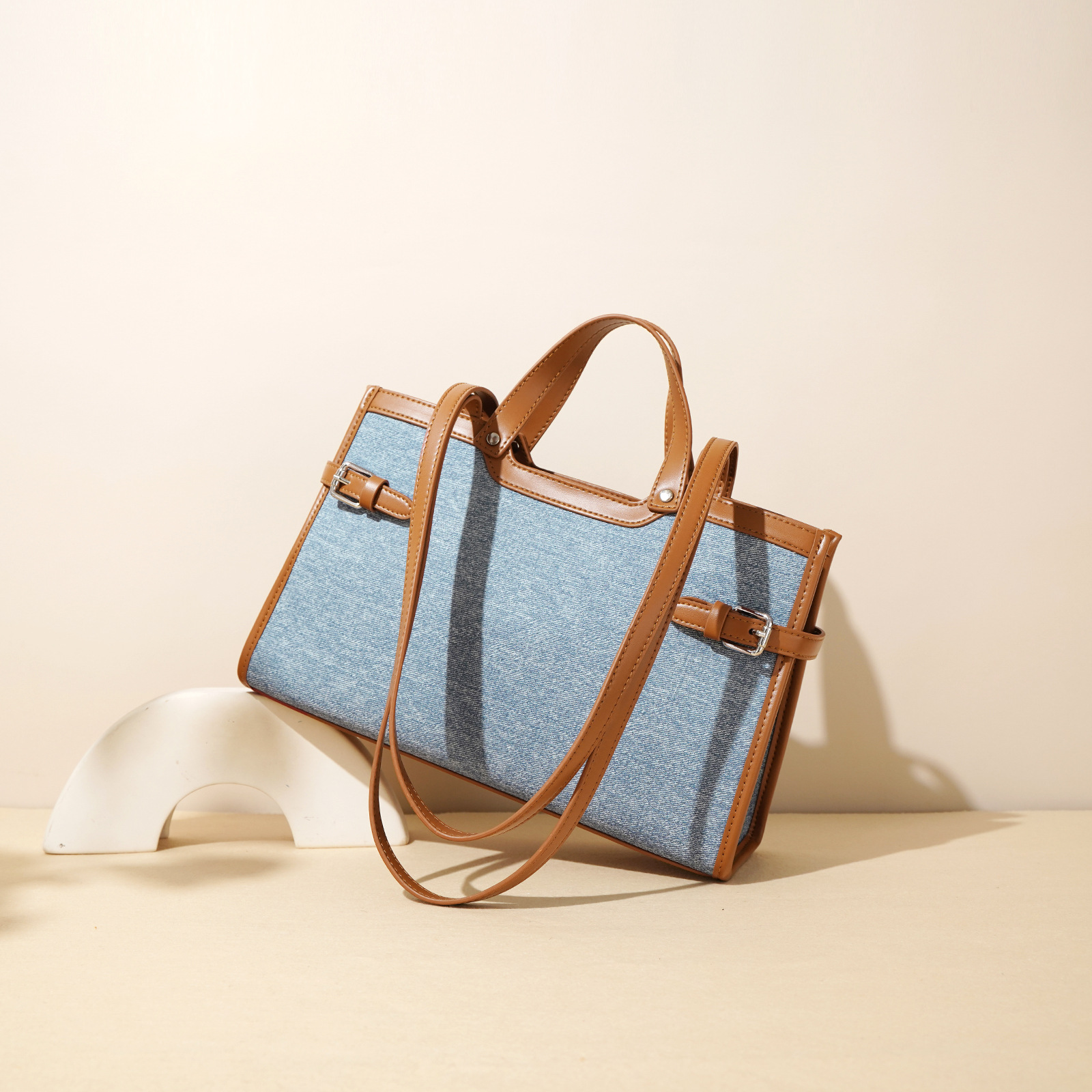 A stylish fusion of denim and genuine leather, this underarm tote offers large capacity and versatile styling. Perfect for commuting, travel, or daily errands.