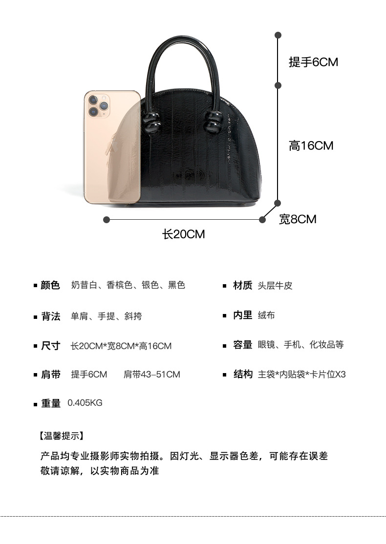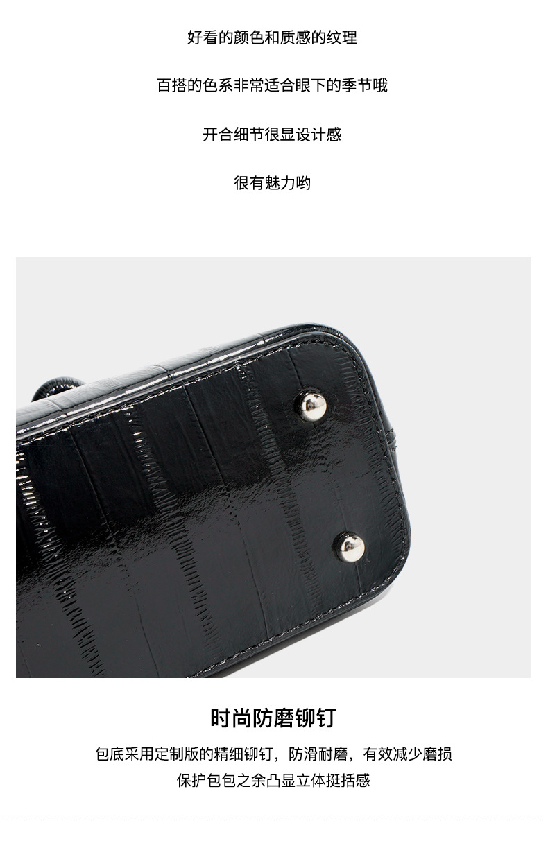 A unique blend of style and functionality, this eel-pattern leather shell bag is perfect for women who value niche design and versatility. Ideal as a handheld or crossbody bag.