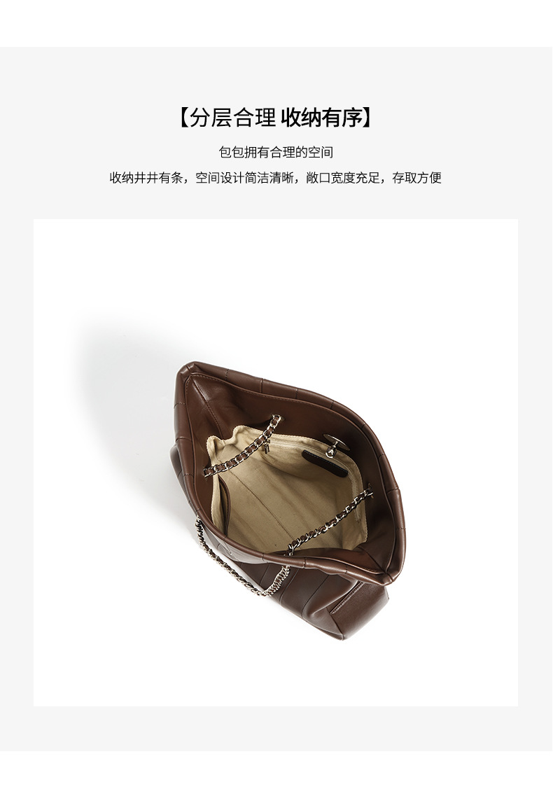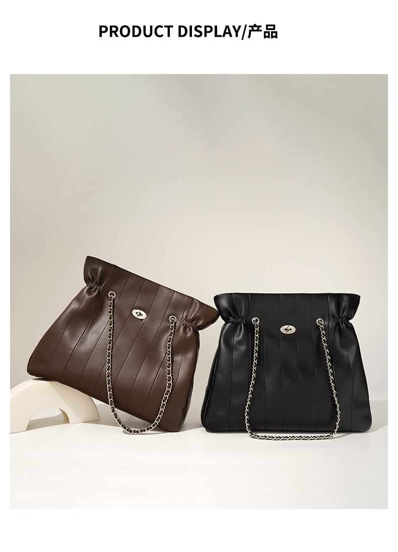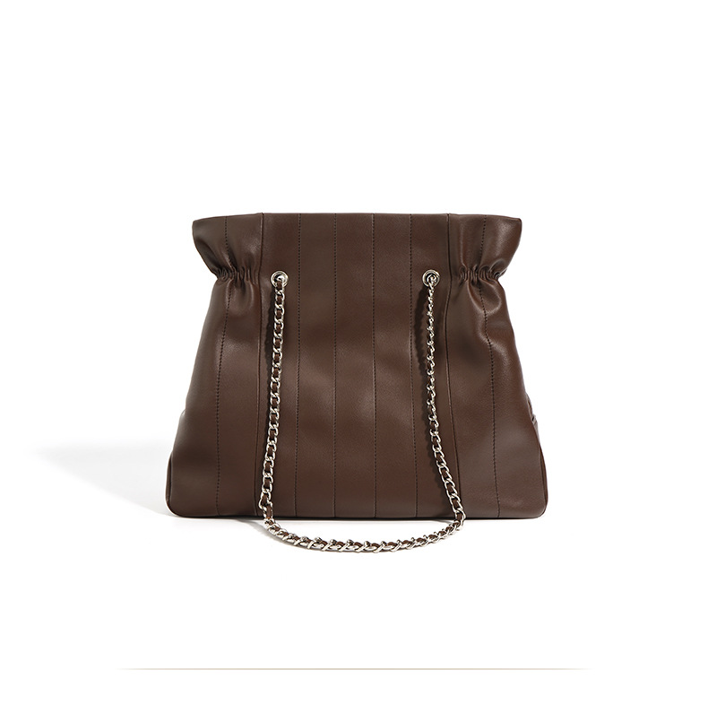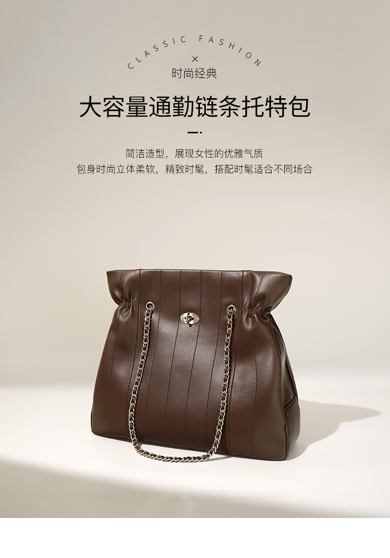 Sleek and functional, this minimalist genuine leather tote bag features a chain strap and large capacity. Perfect for commuting, travel, or daily errands.
