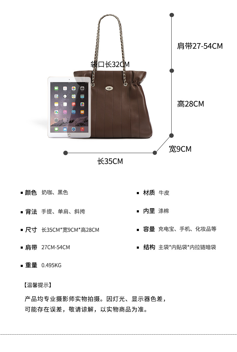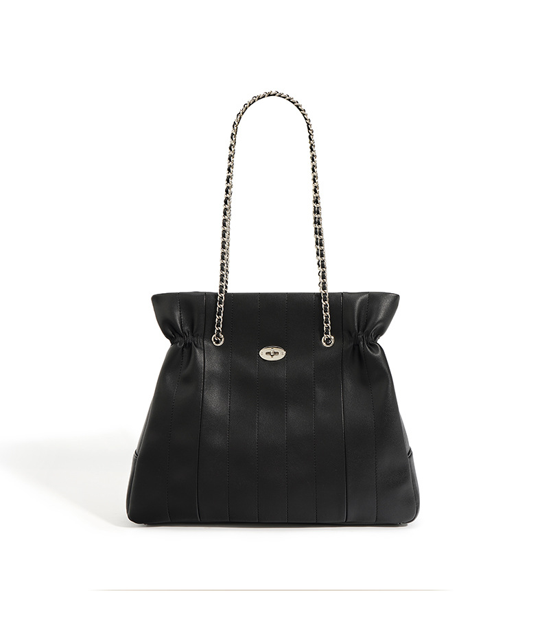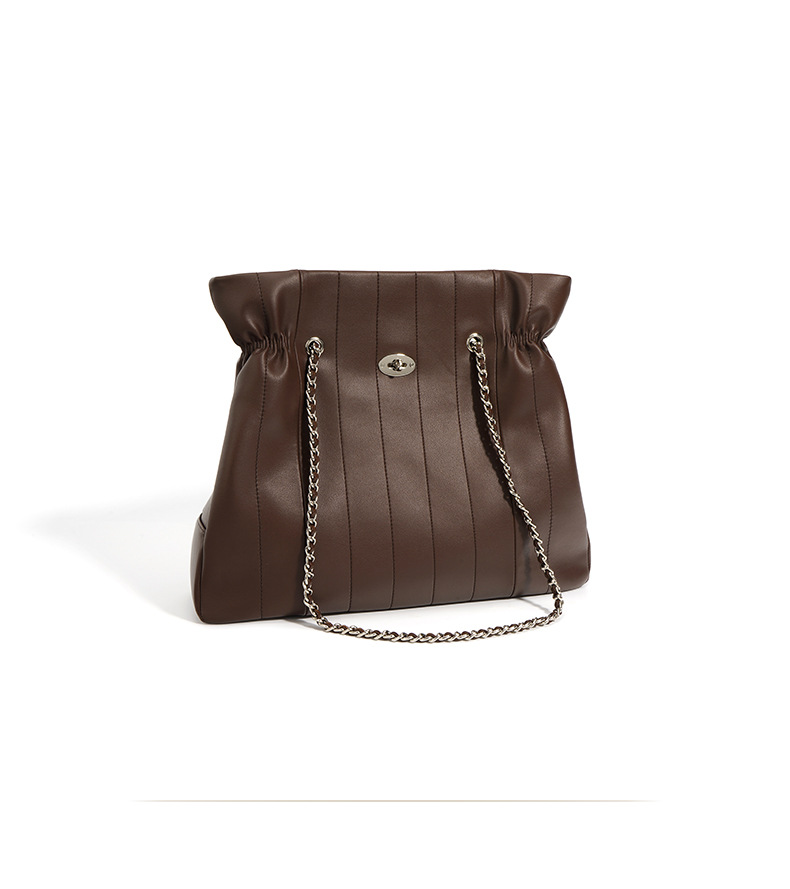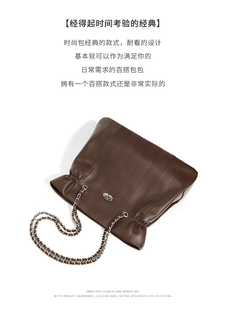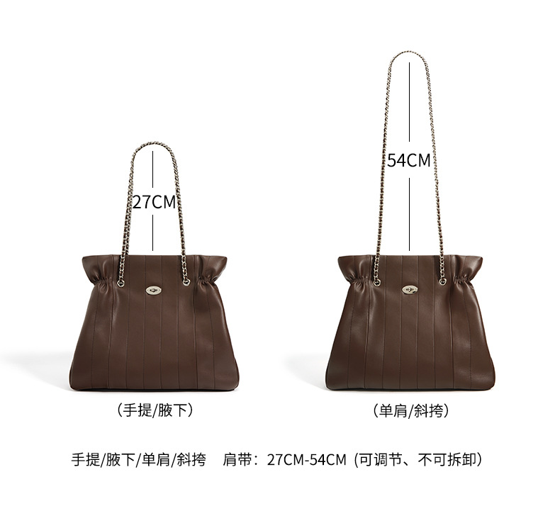 Sleek and functional, this minimalist genuine leather tote bag features a chain strap and large capacity. Perfect for commuting, travel, or daily errands.