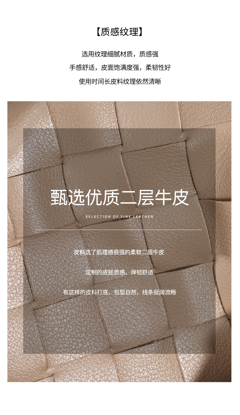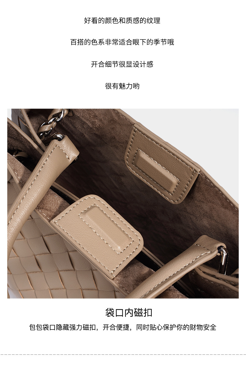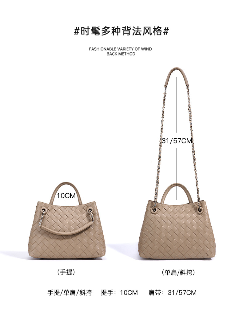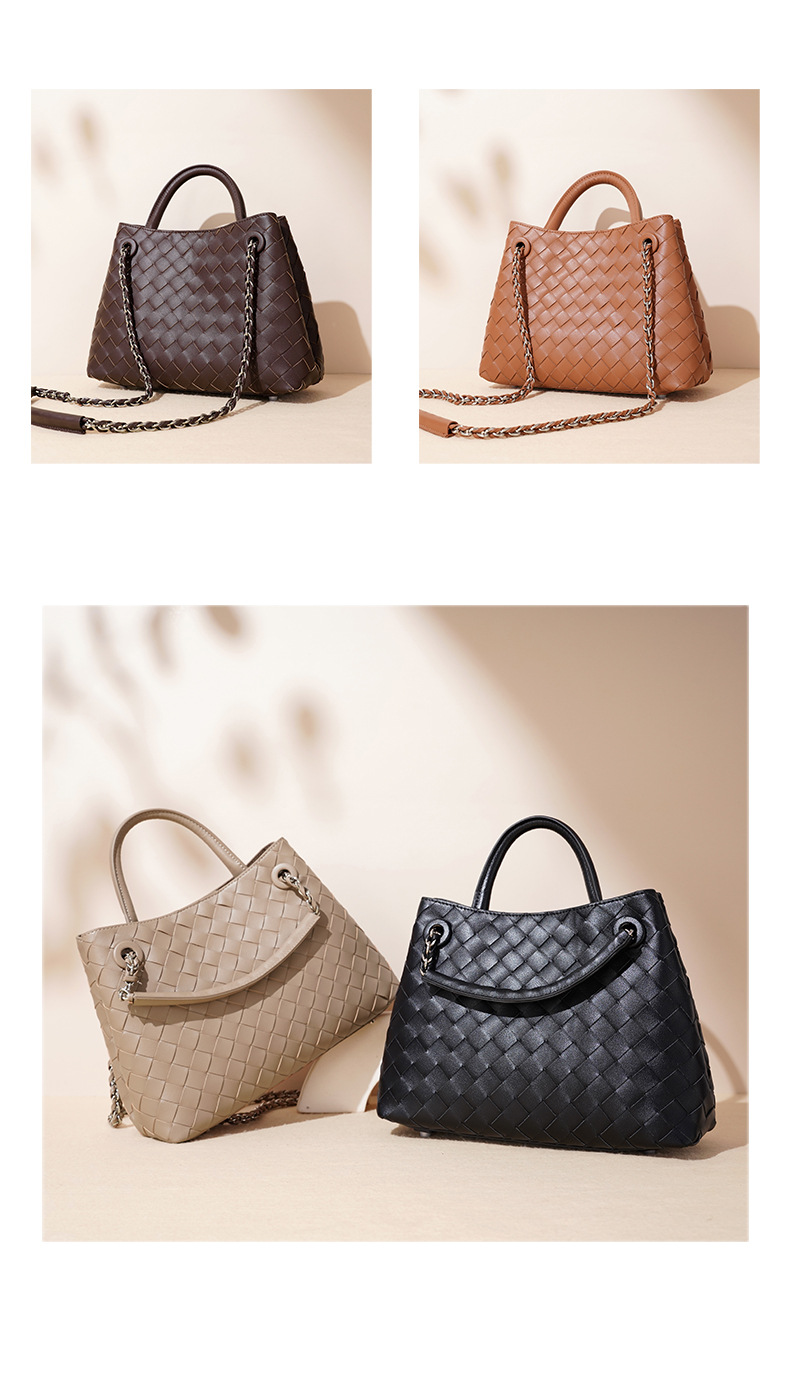 A stylish blend of retro and modern, this woven genuine leather tote bag offers large capacity and versatile styling. Perfect for commuting or casual outings.