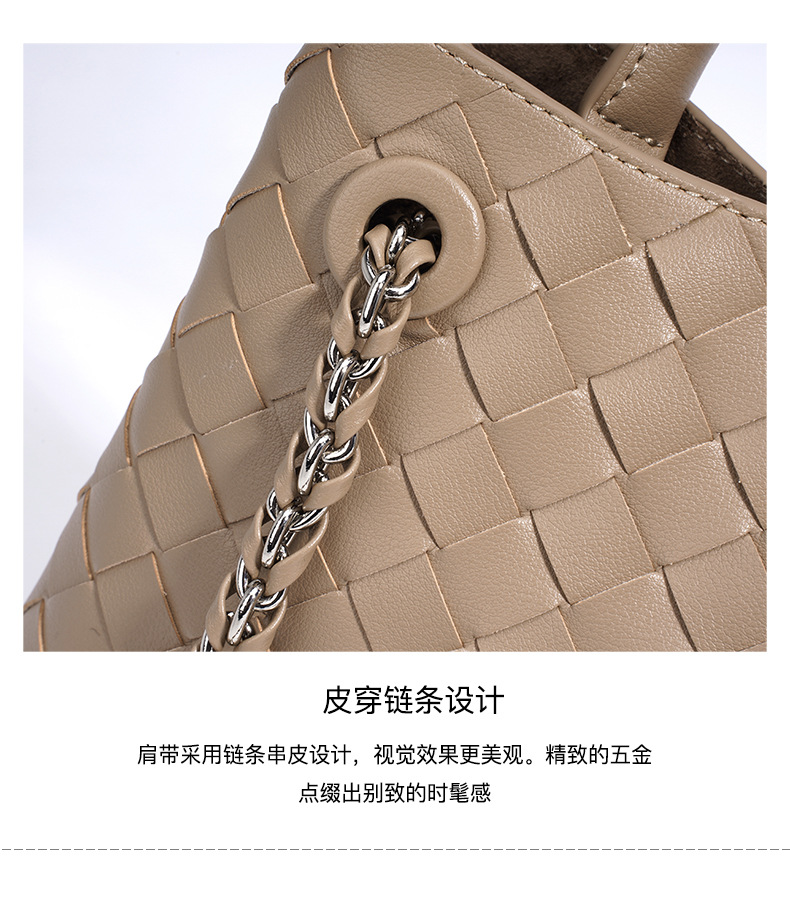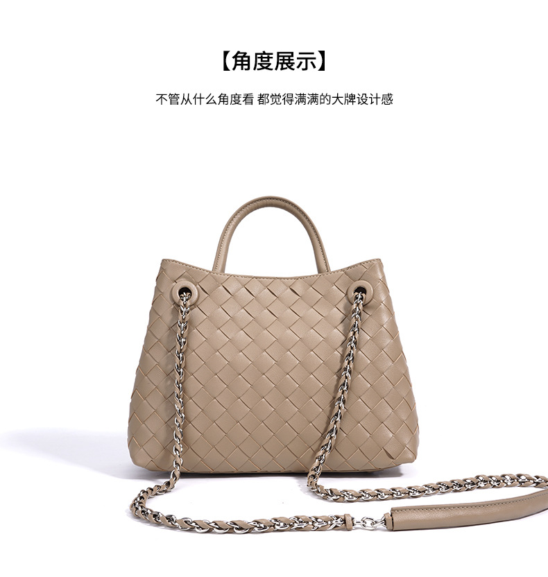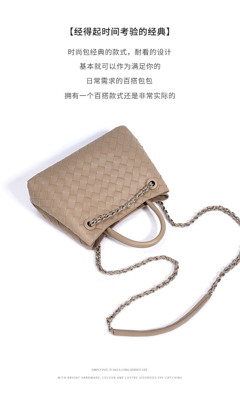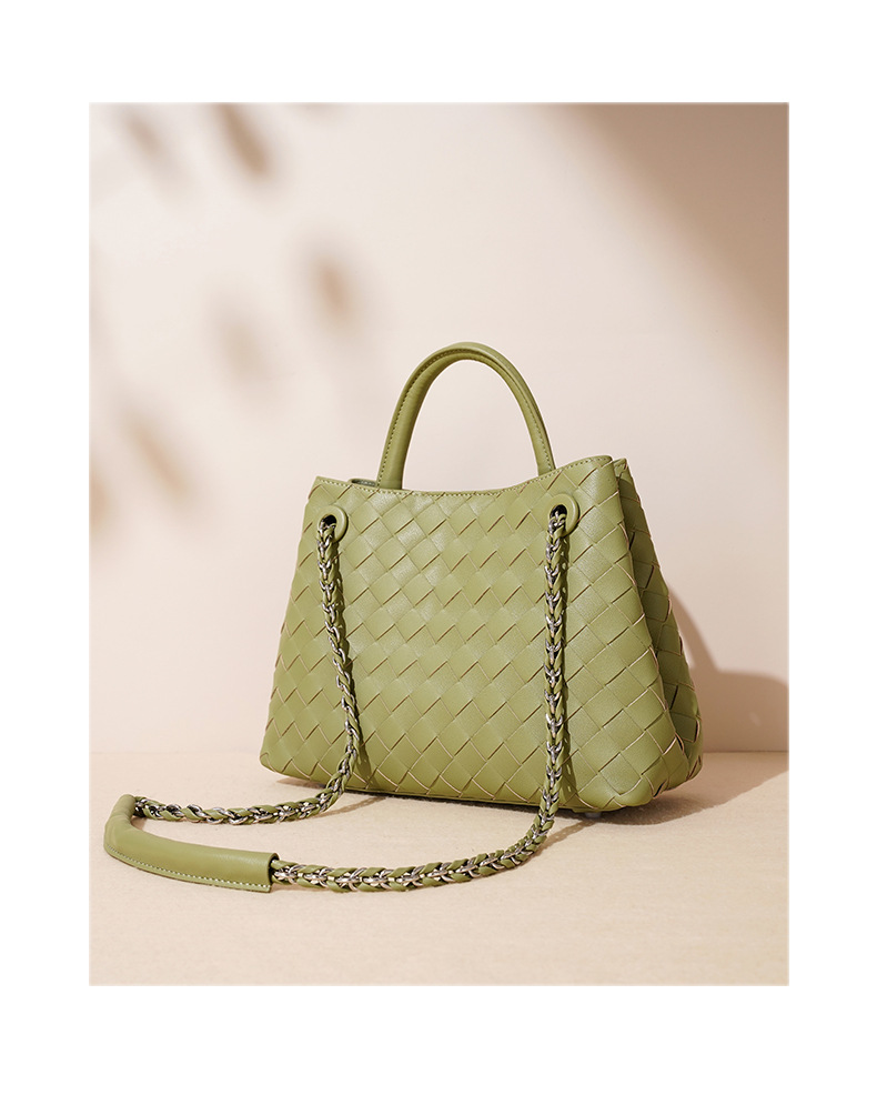 A stylish blend of retro and modern, this woven genuine leather tote bag offers large capacity and versatile styling. Perfect for commuting or casual outings.
