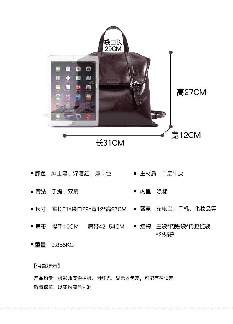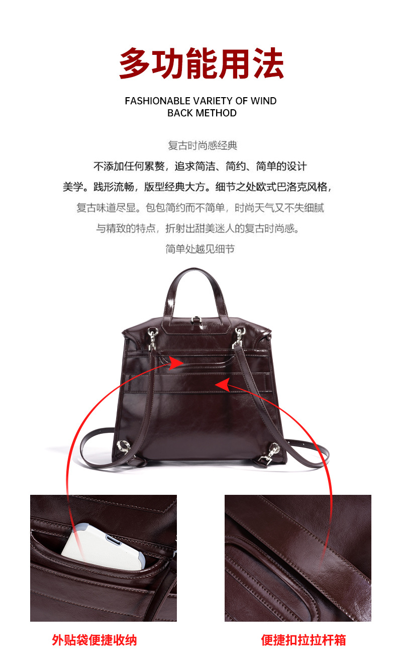 A fusion of luxury and practicality, this genuine leather backpack and handbag combo features a Casual, niche design. Perfect for women who value high-end fashion and versatile functionality.