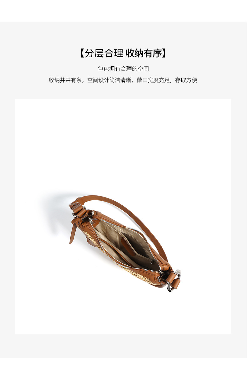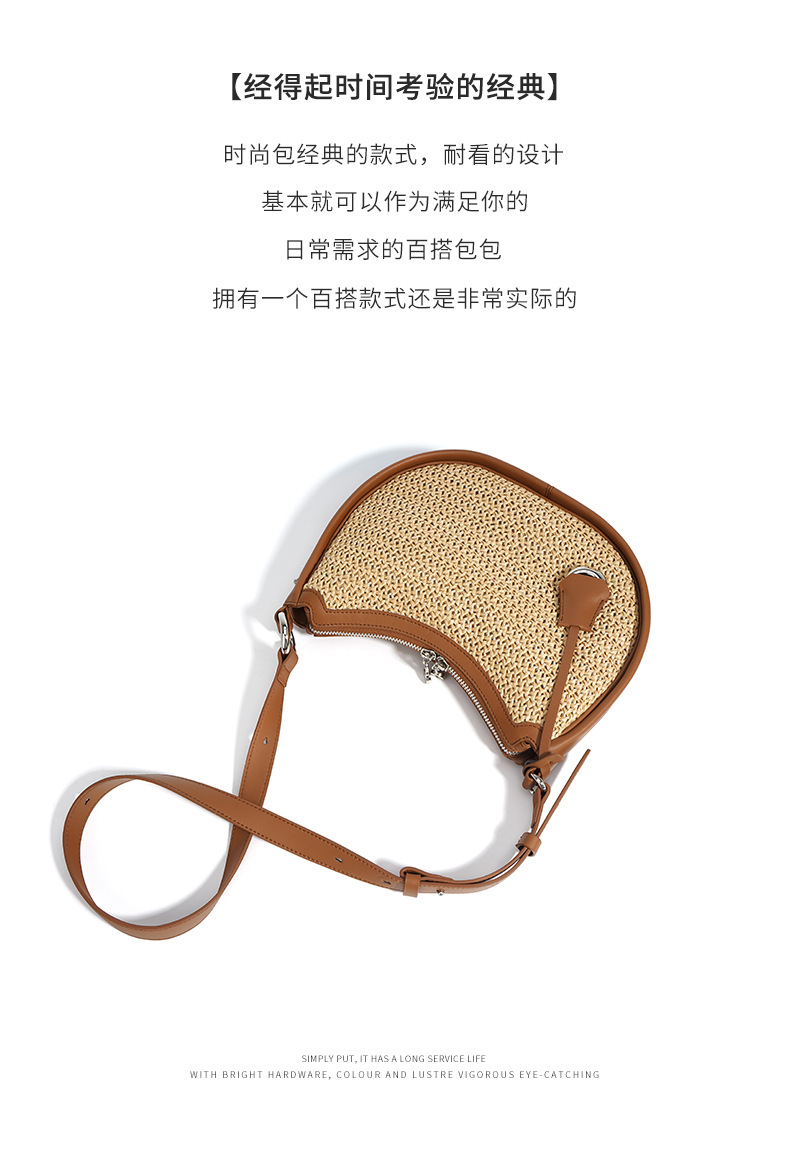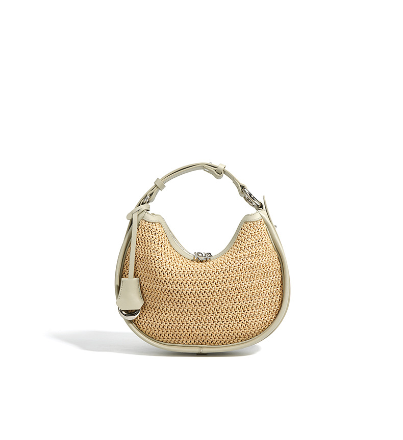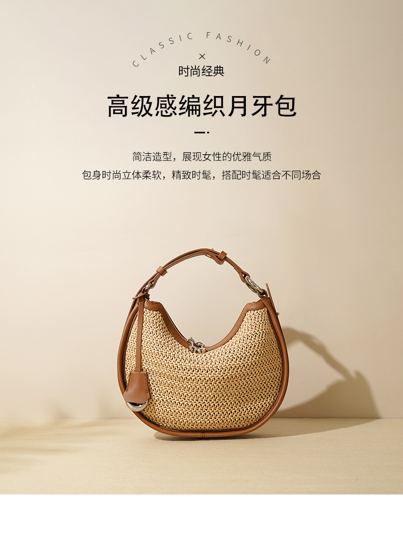 A unique blend of style and functionality, this woven genuine leather crescent bag features a compact design and versatile styling. Perfect for casual outings or travel.