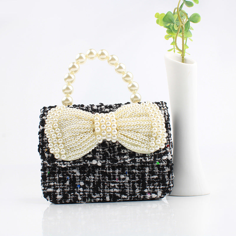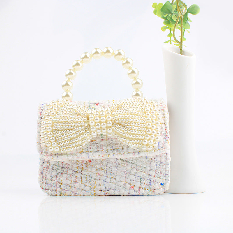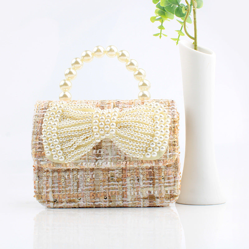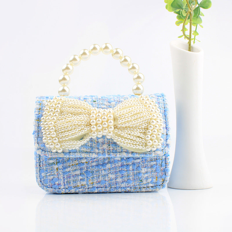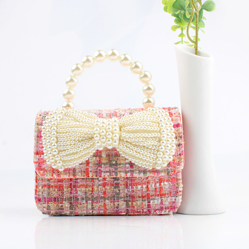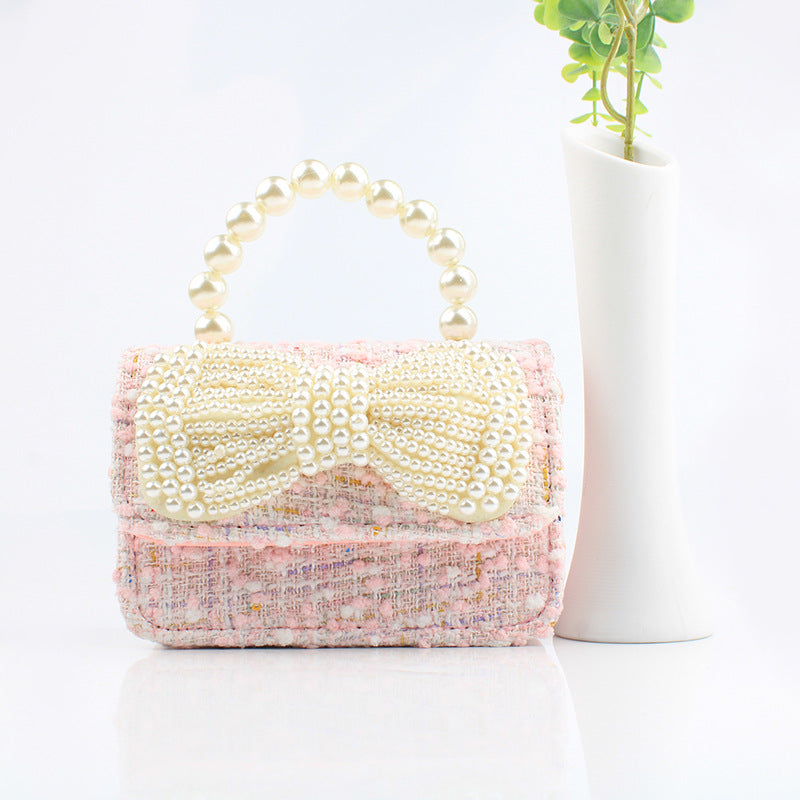 Inspired by Korean fashion trends, this mini cross-body bag features a stylish bow design adorned with faux pearl embellishments, adding a touch of elegance to any outfit. Perfect for carrying small essentials, it's ideal for outings and special occasions. A top choice for parents and children seeking cute cross-body bags for girls in Singapore, this bag combines chic design with practical functionality, making it a must-have for stylish kids.