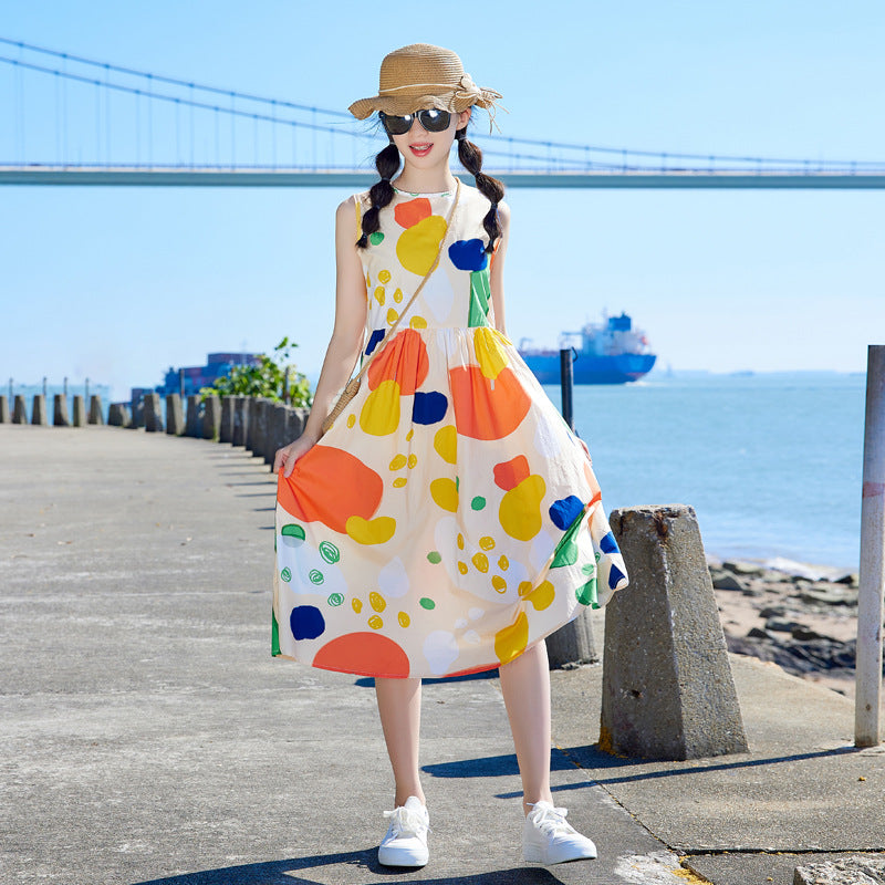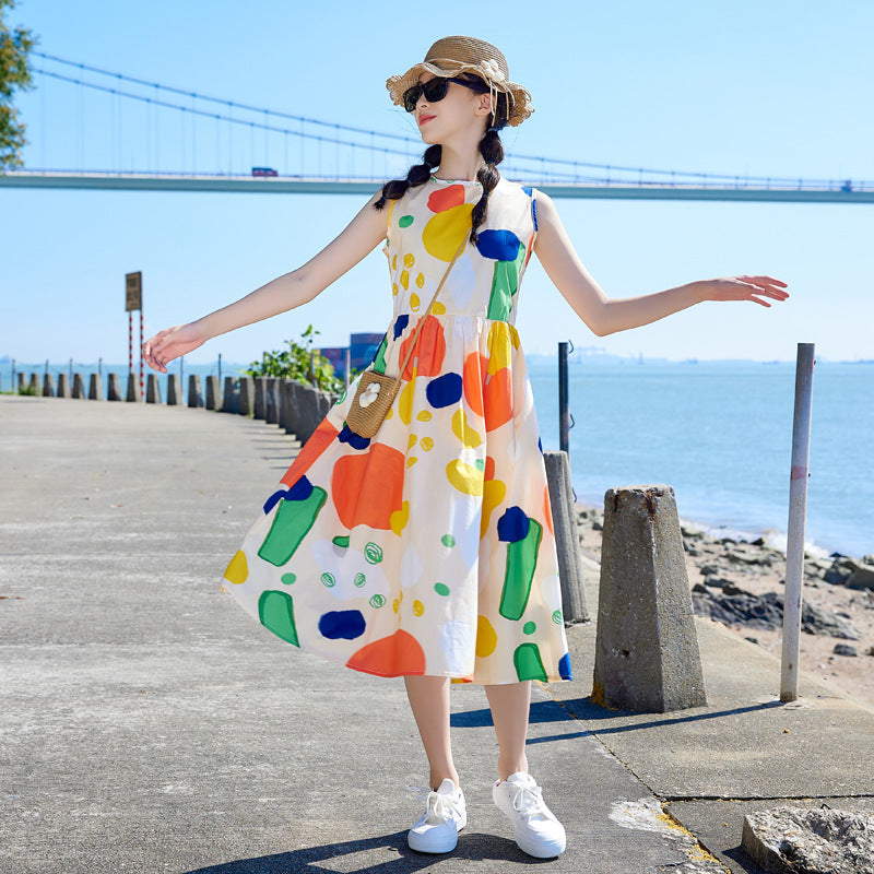 这款连衣裙非常适合时尚前卫的年轻女孩,采用无袖设计和时尚涂鸦印花。舒适的版型和时尚的外观使其成为夏季外出和休闲穿着的理想选择。这款时尚单品可提升您小宝贝的衣橱品味,现已在新加坡的在线女童连衣裙商店有售!