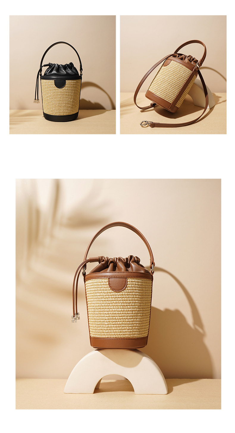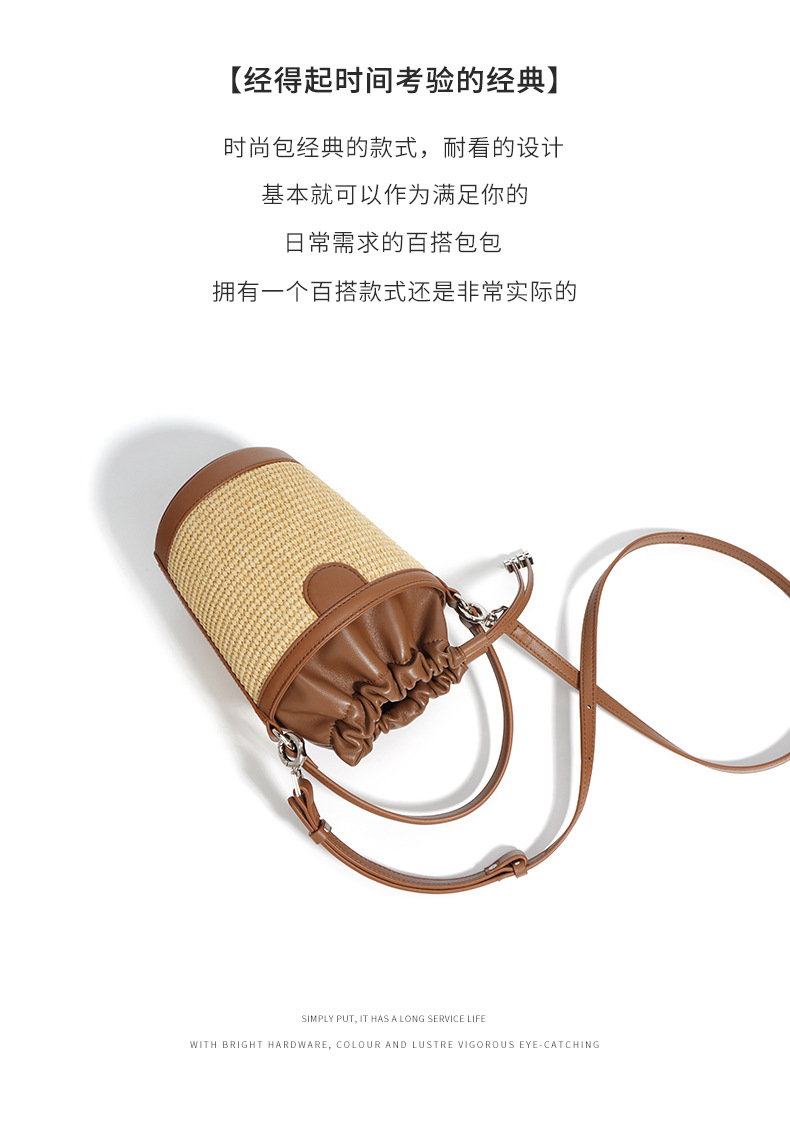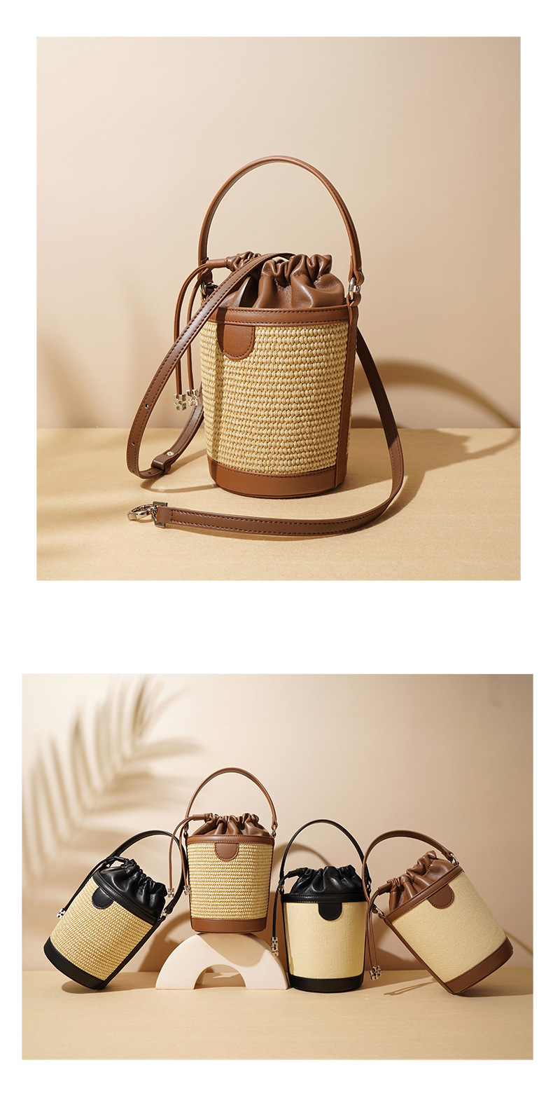 Inspired by Korean fashion, this bucket bag combines genuine leather and canvas for a unique, contrasting design. Perfect as a hand-held or crossbody bag, it’s ideal for daily use or travel.