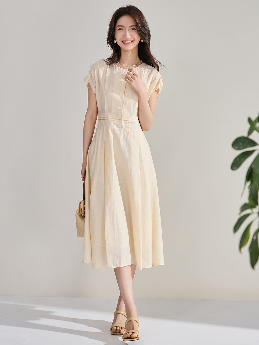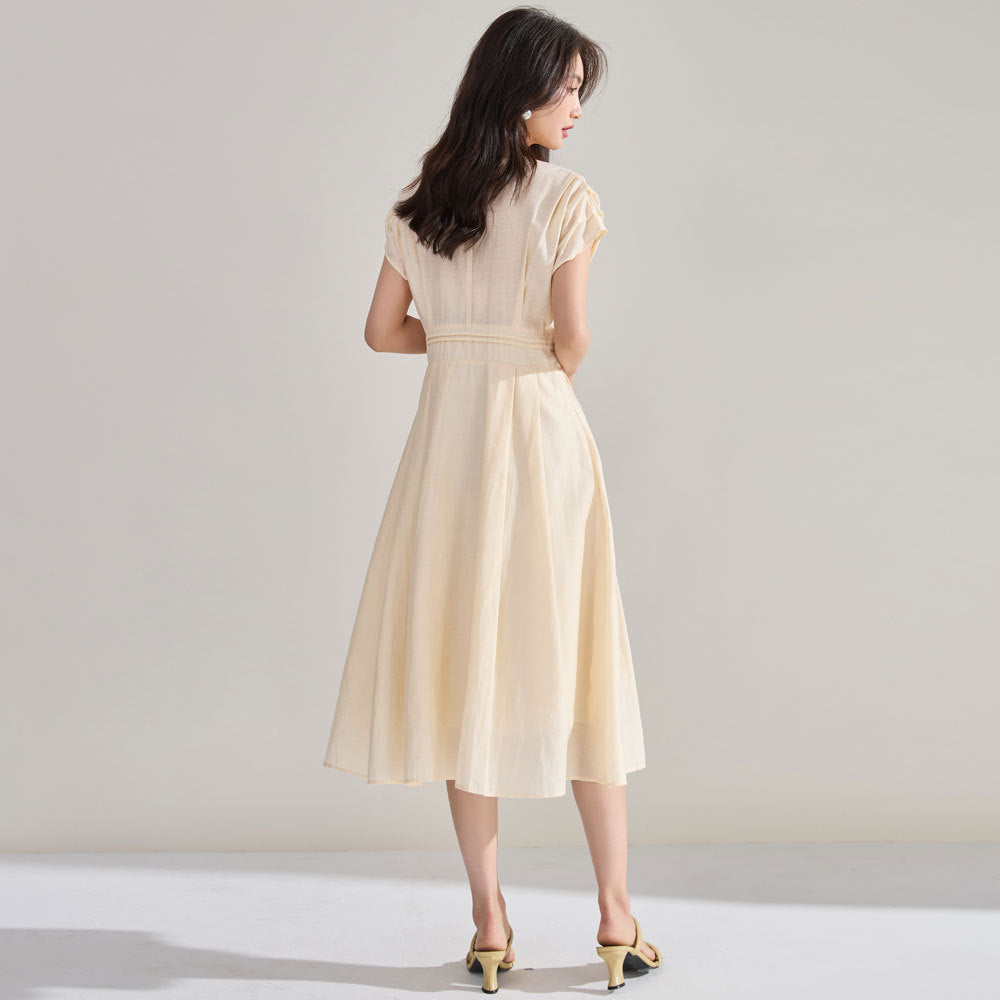 Discover the ultimate in daytime elegance with our Radiant Charm French Midi Dress. Crafted from lightweight fabric, this dress exudes sophistication with its subtle button accents and a flattering mid-length cut. The neutral color palette ensures it pairs beautifully with any accessories, making it versatile for any occasion. From a morning brunch to an evening outing, this dress promises comfort and style. Its breathable material and timeless design provide a seamless transition from day to night, ensuring you look effortlessly stylish throughout your day.