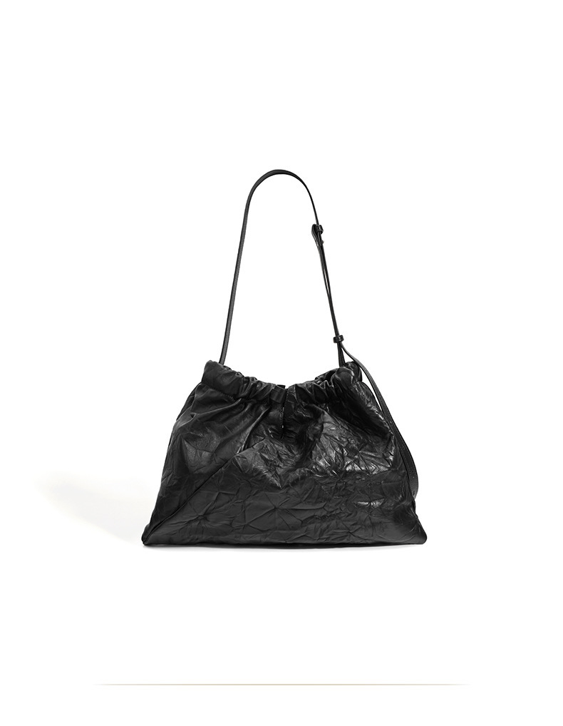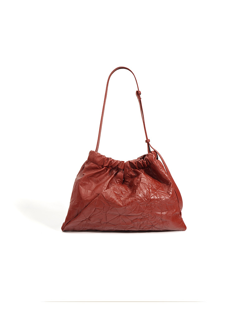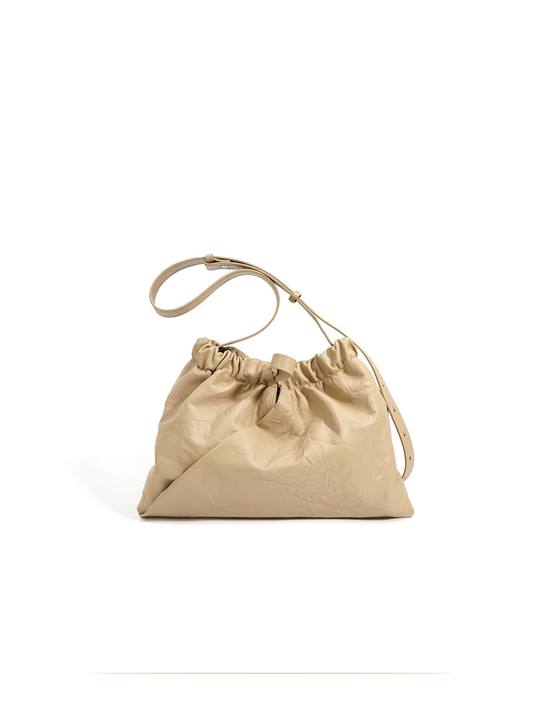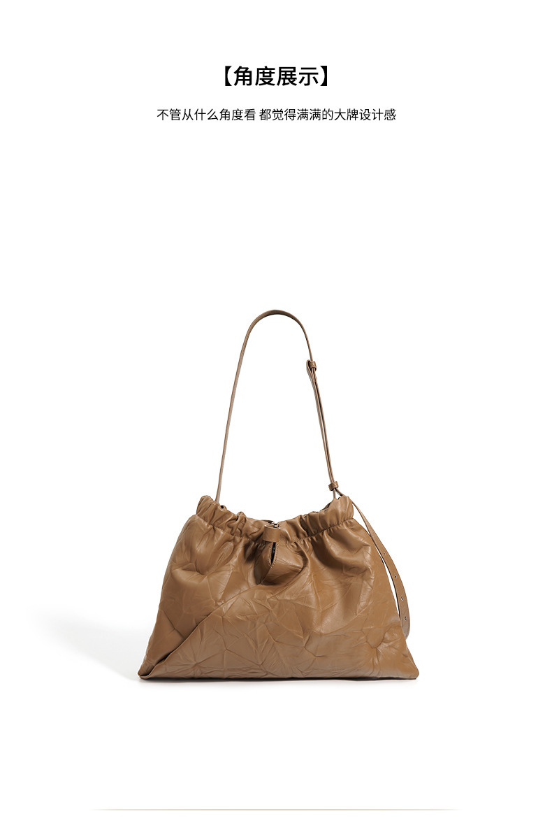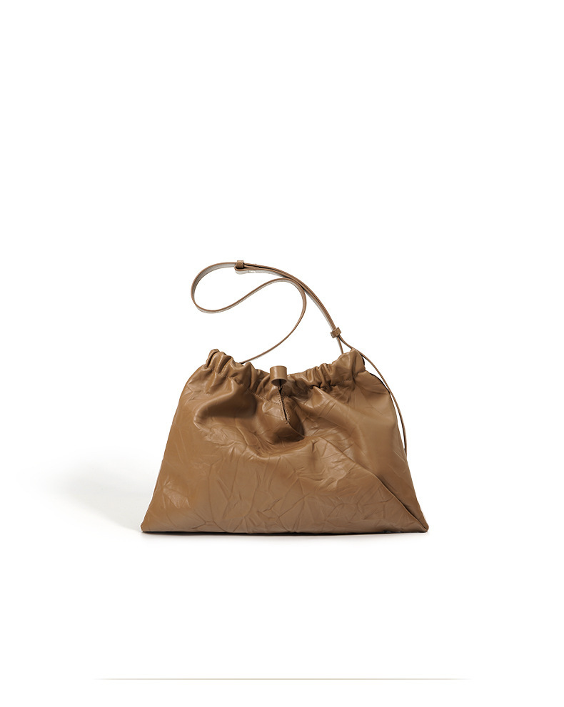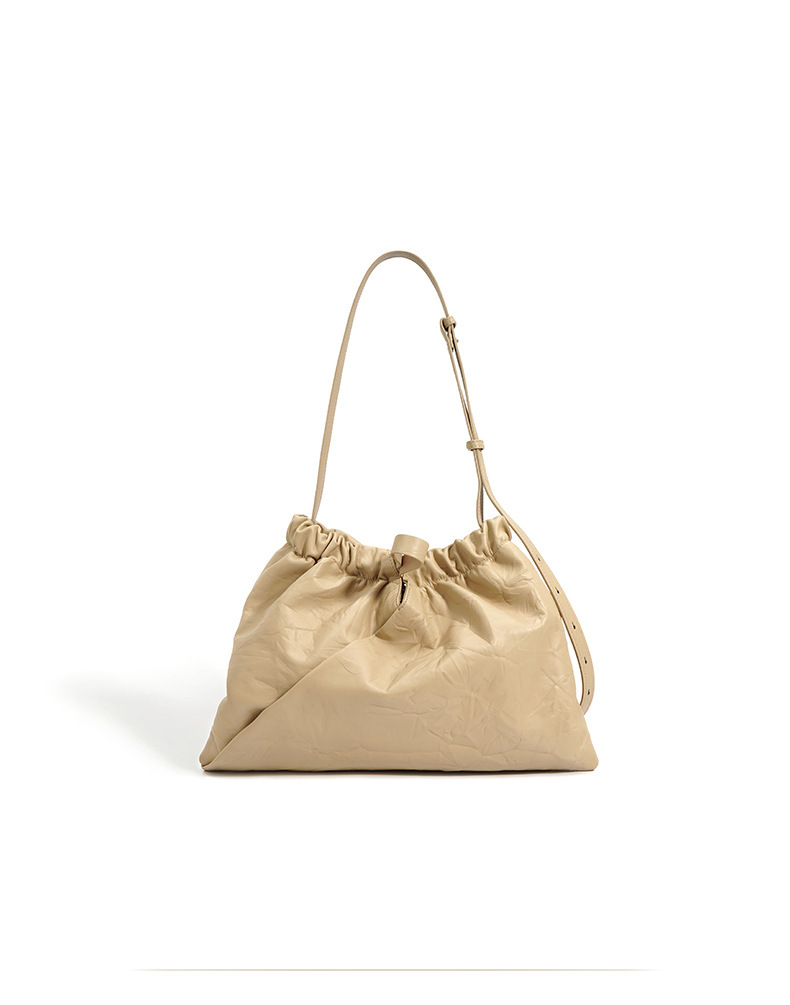 Pleated Genuine Leather Drawstring Retro Hobo Bag