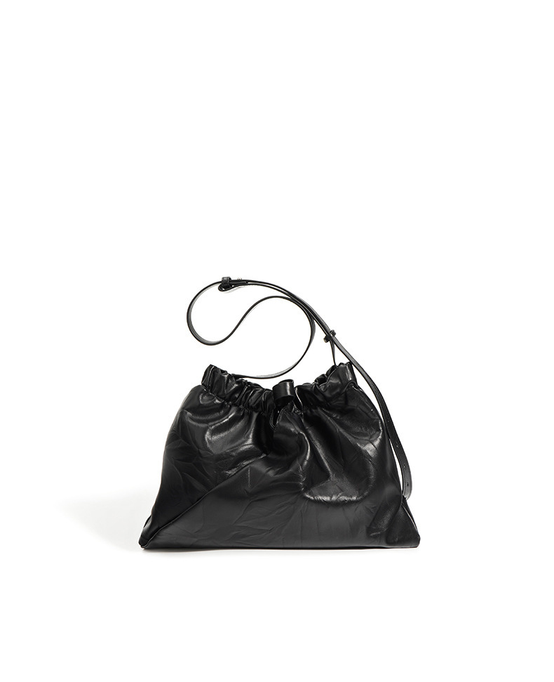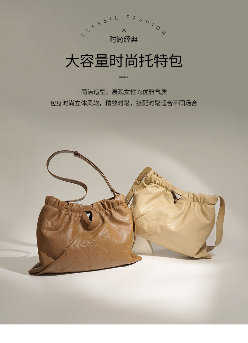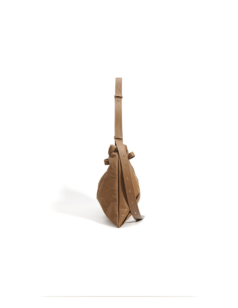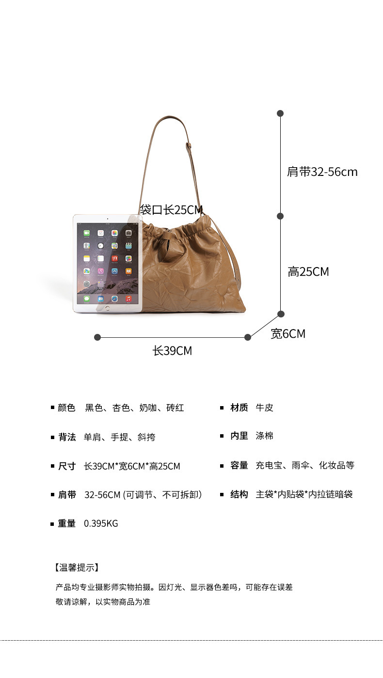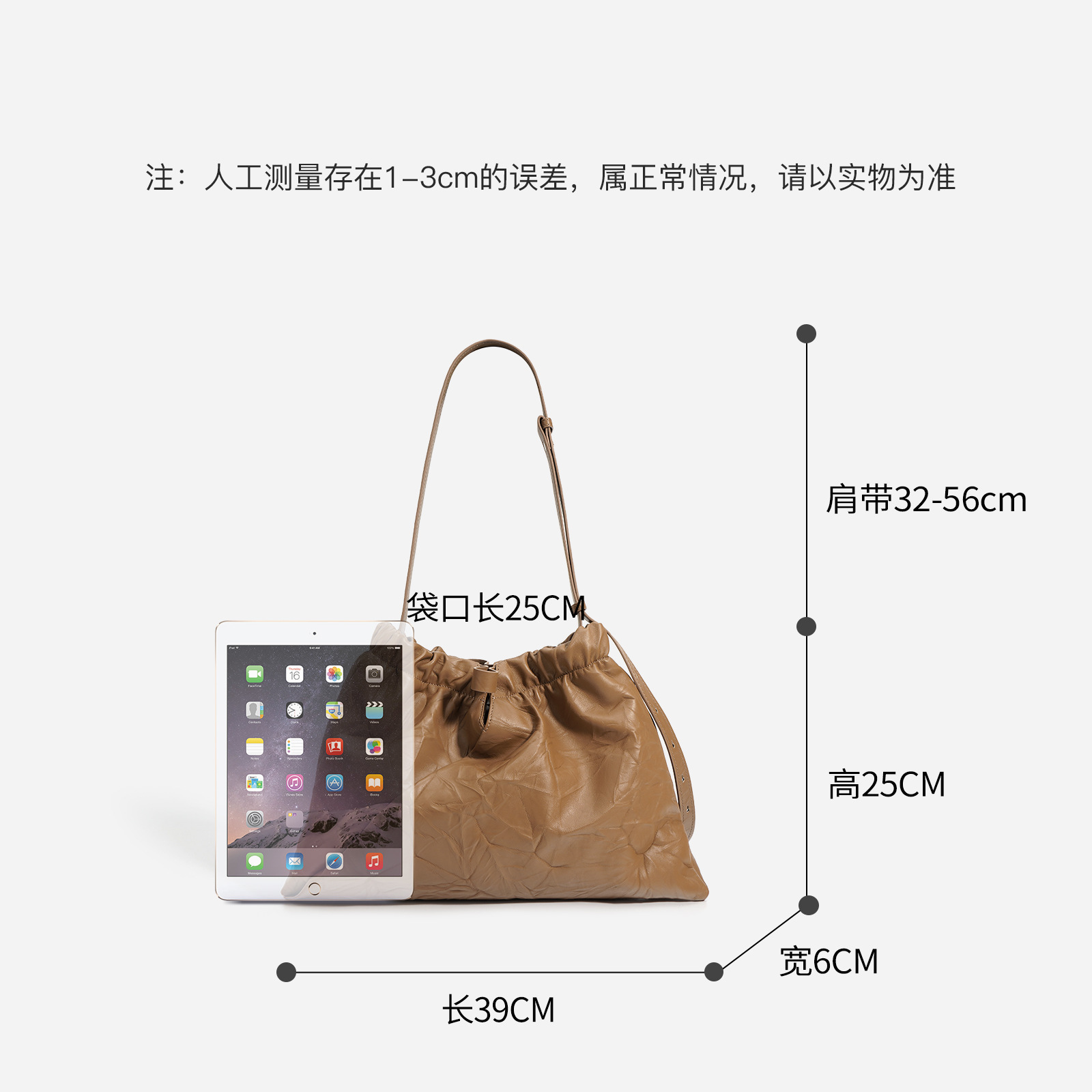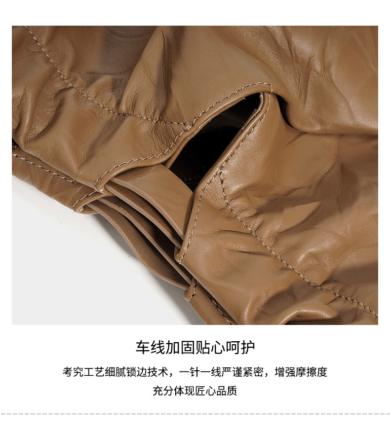 Pleated Genuine Leather Drawstring Retro Hobo Bag