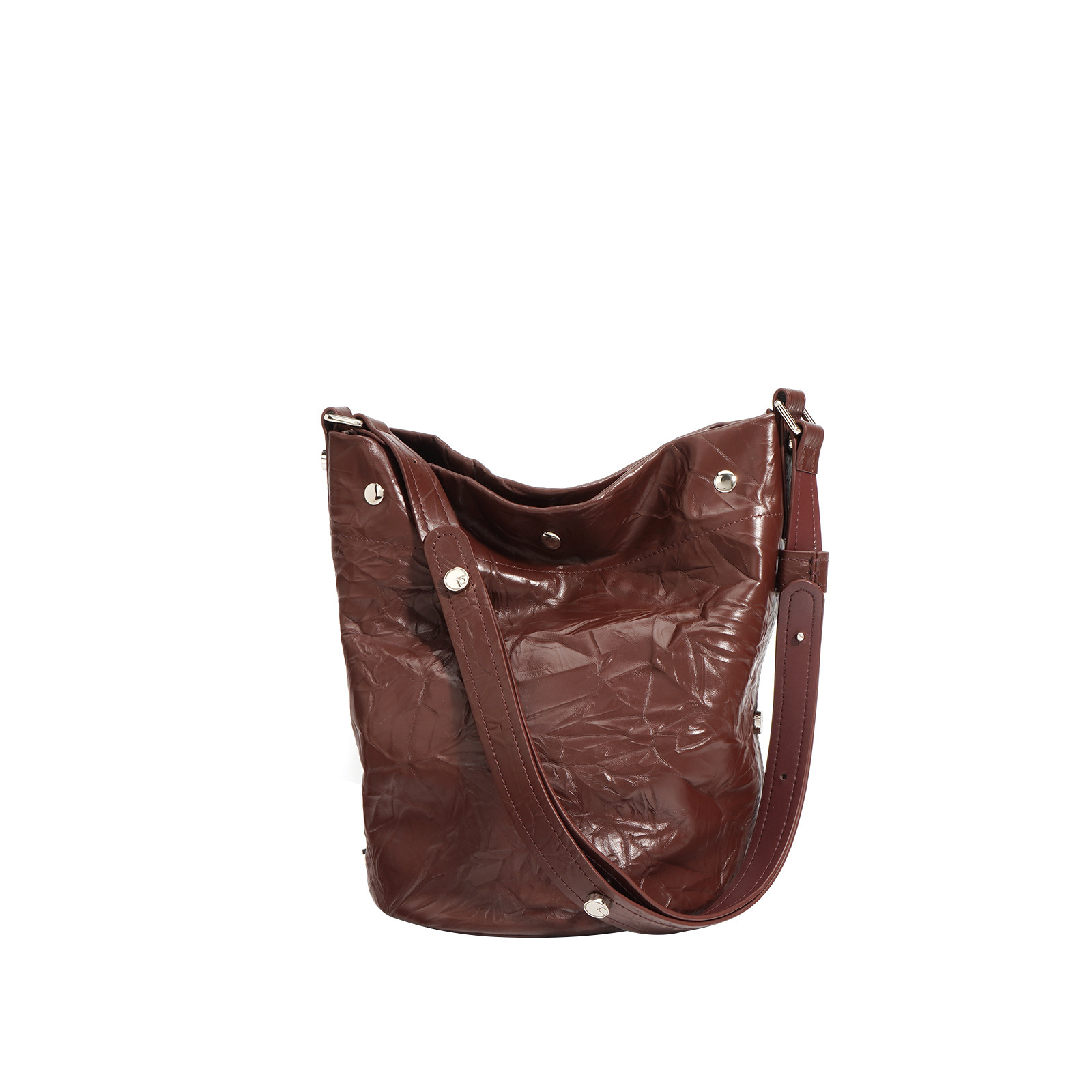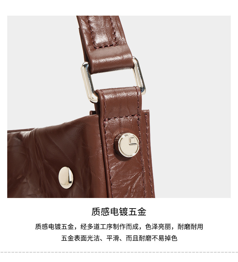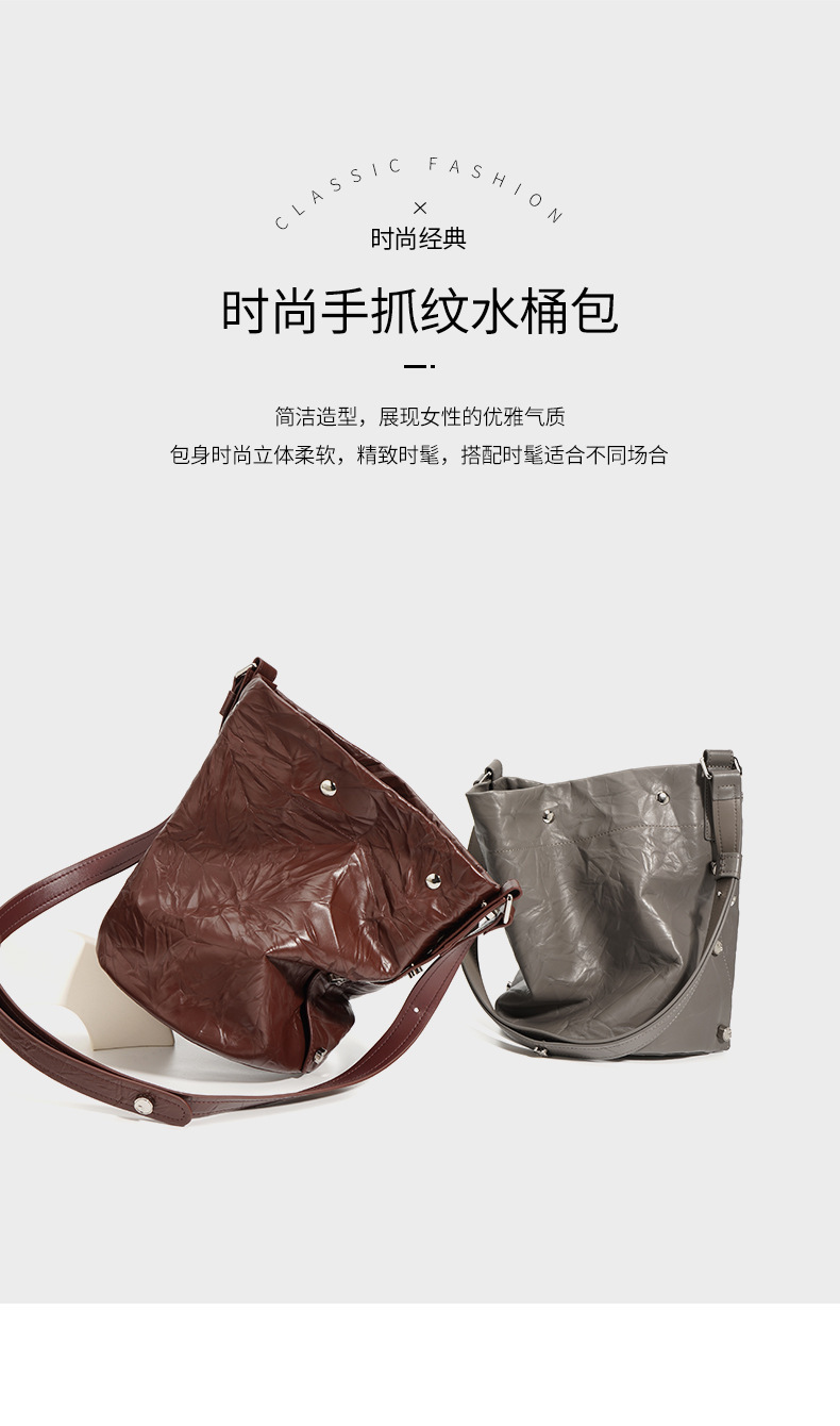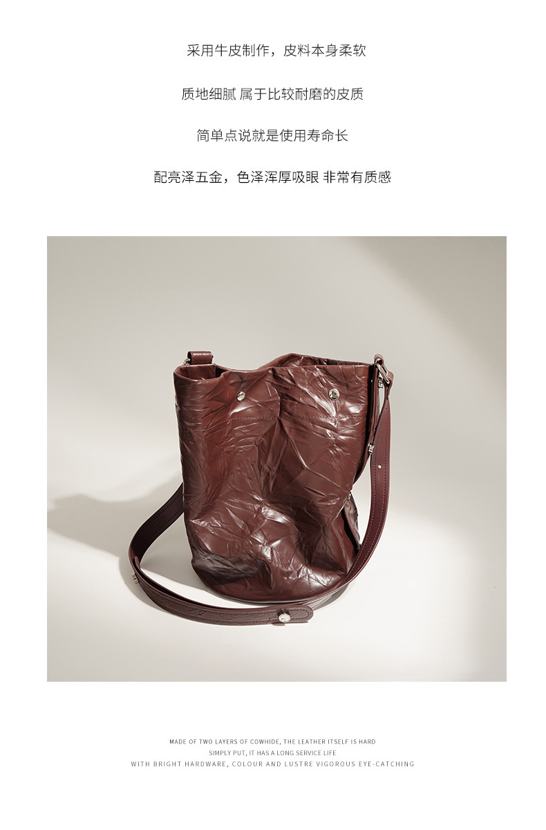 A trendy blend of retro and modern, this large-capacity bucket bag features pleated genuine leather and a spacious design. Ideal for daily commuting, travel, or casual outings. Stylish and practical for the urban woman.