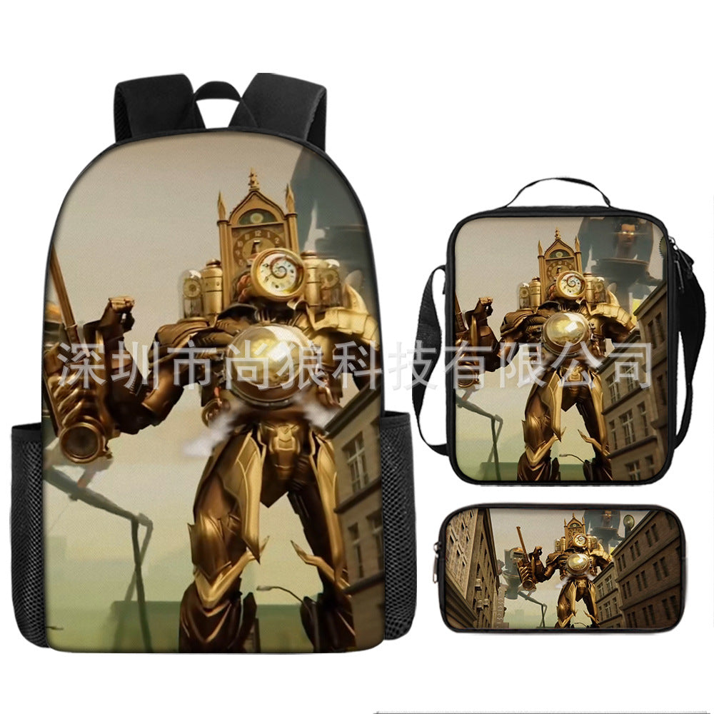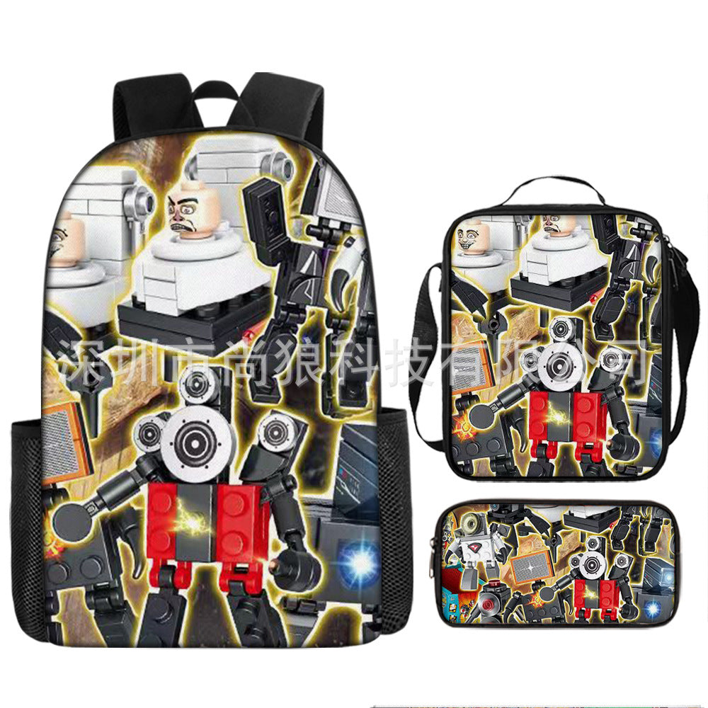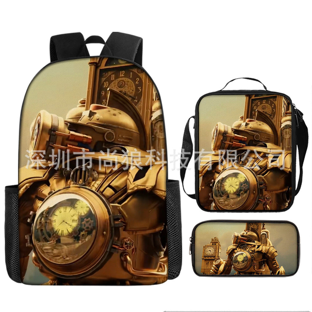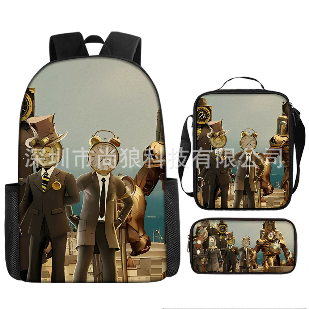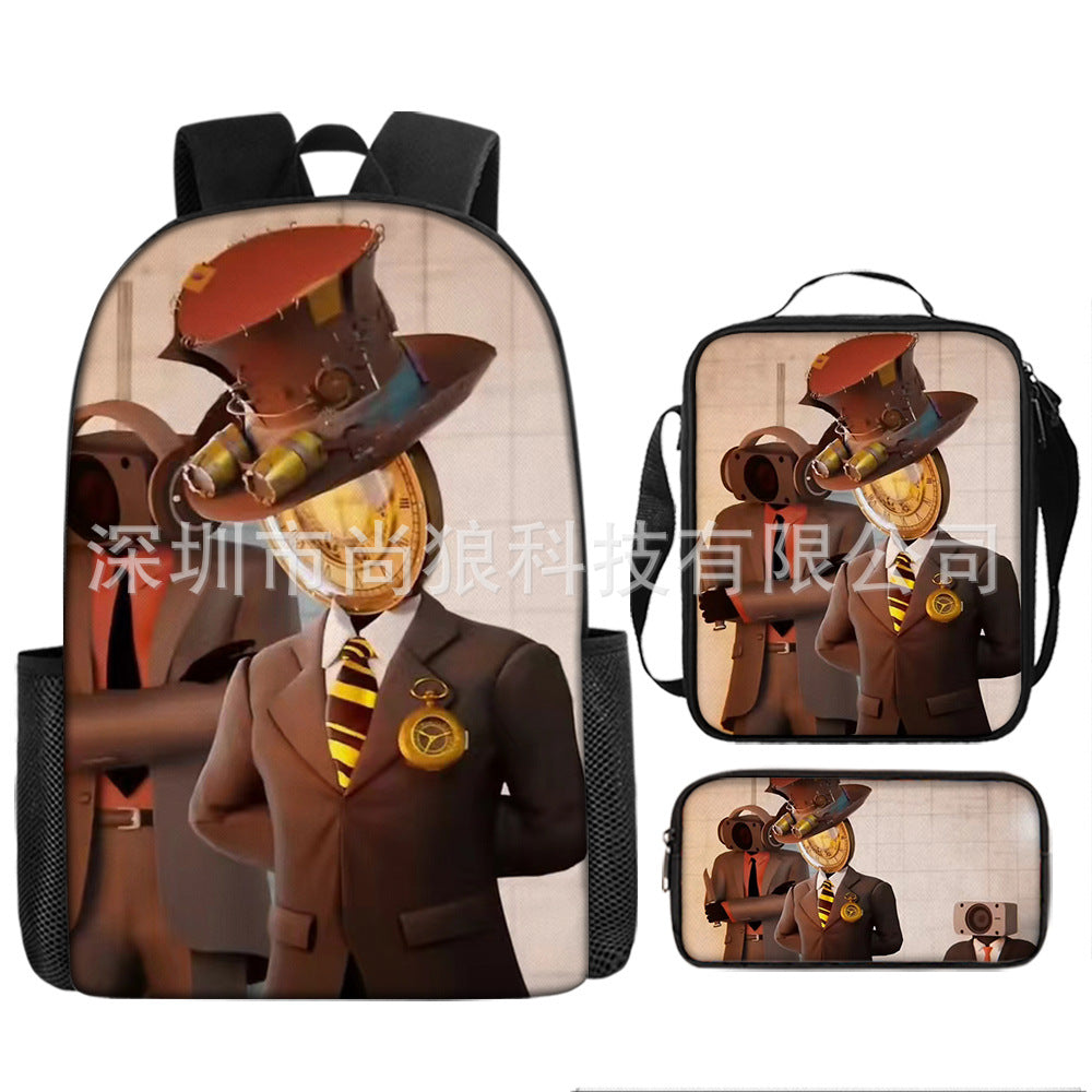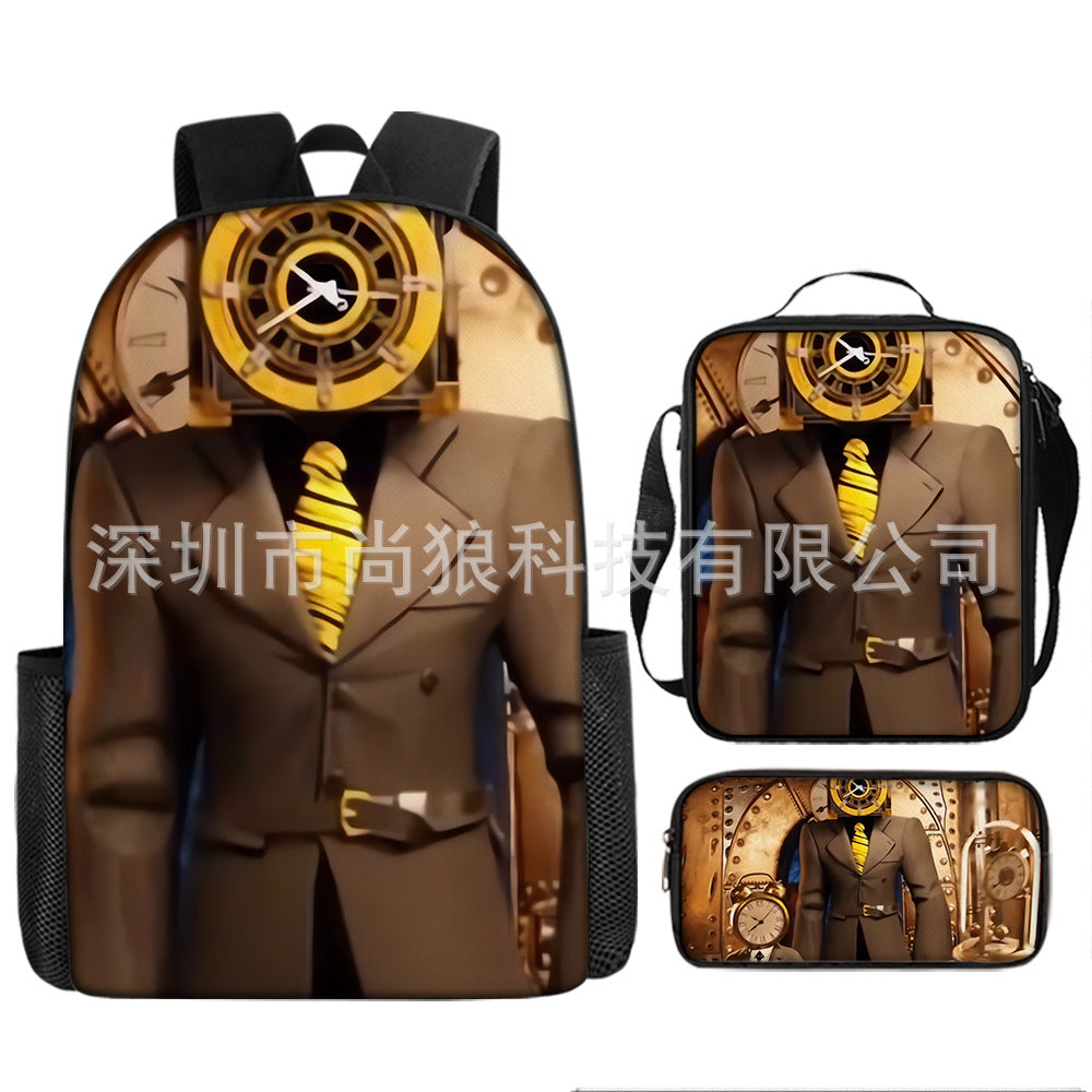 Titan ClockMan TV Man Skibidi 厕所 儿童背包三件套