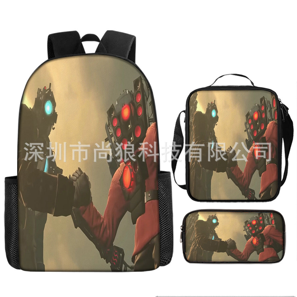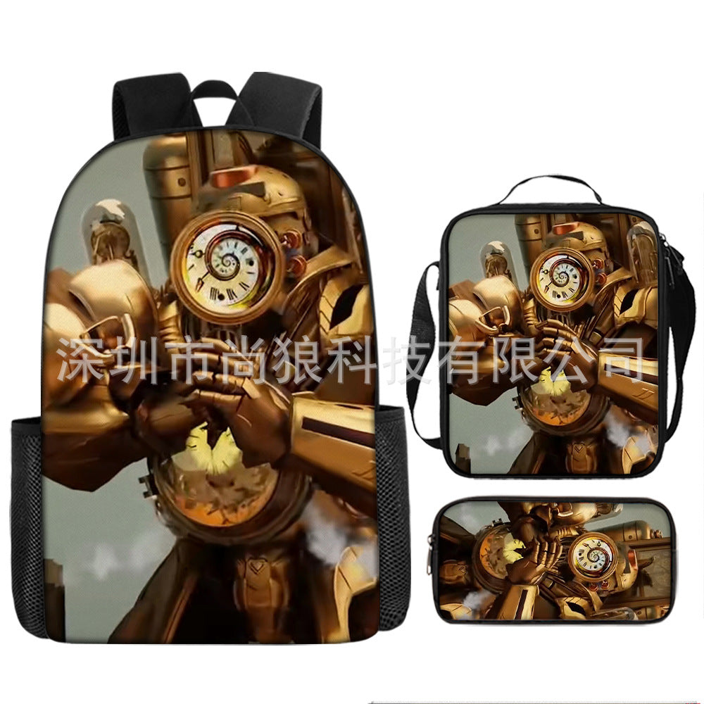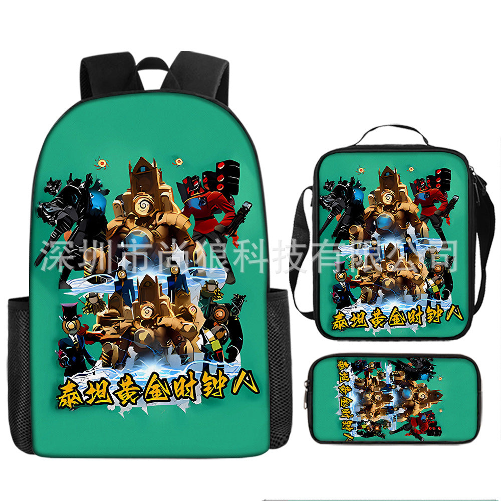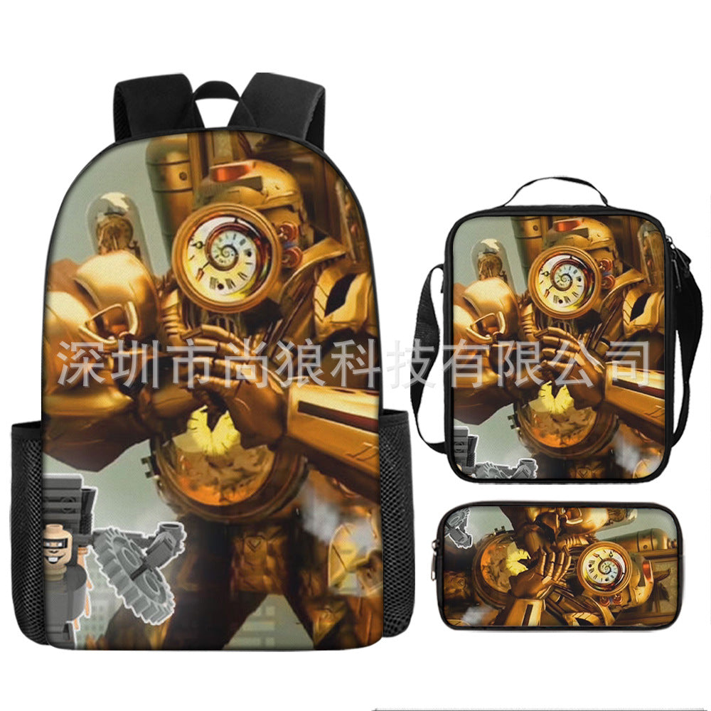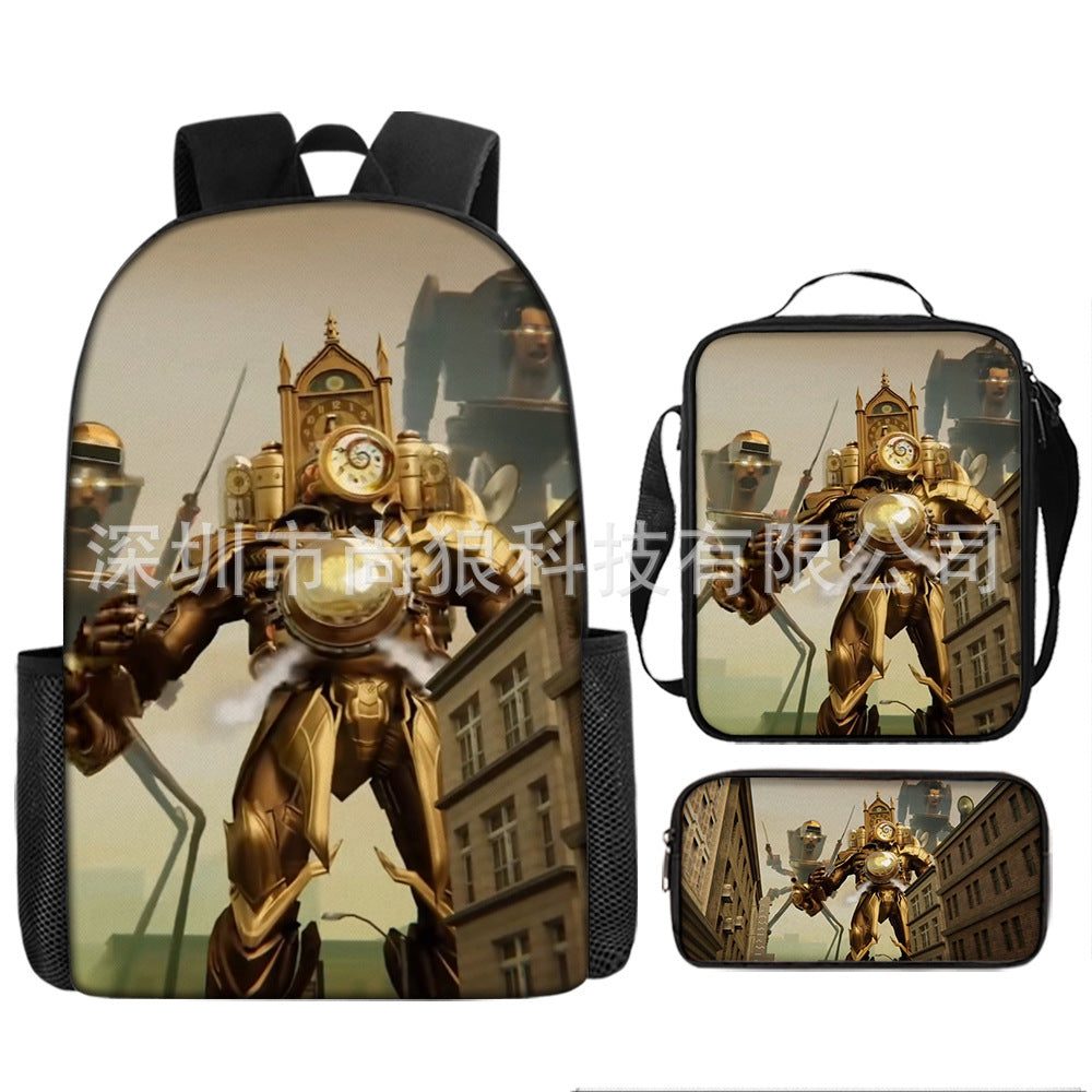 Titan ClockMan TV Man Skibidi 厕所 儿童背包三件套