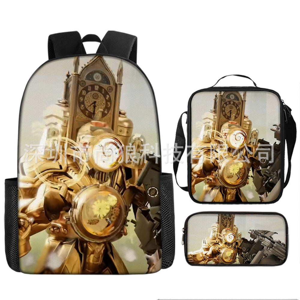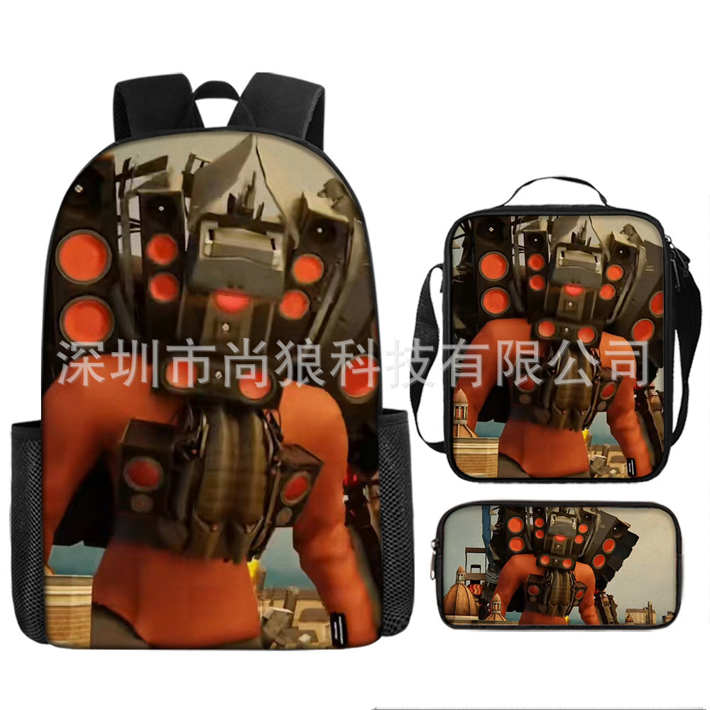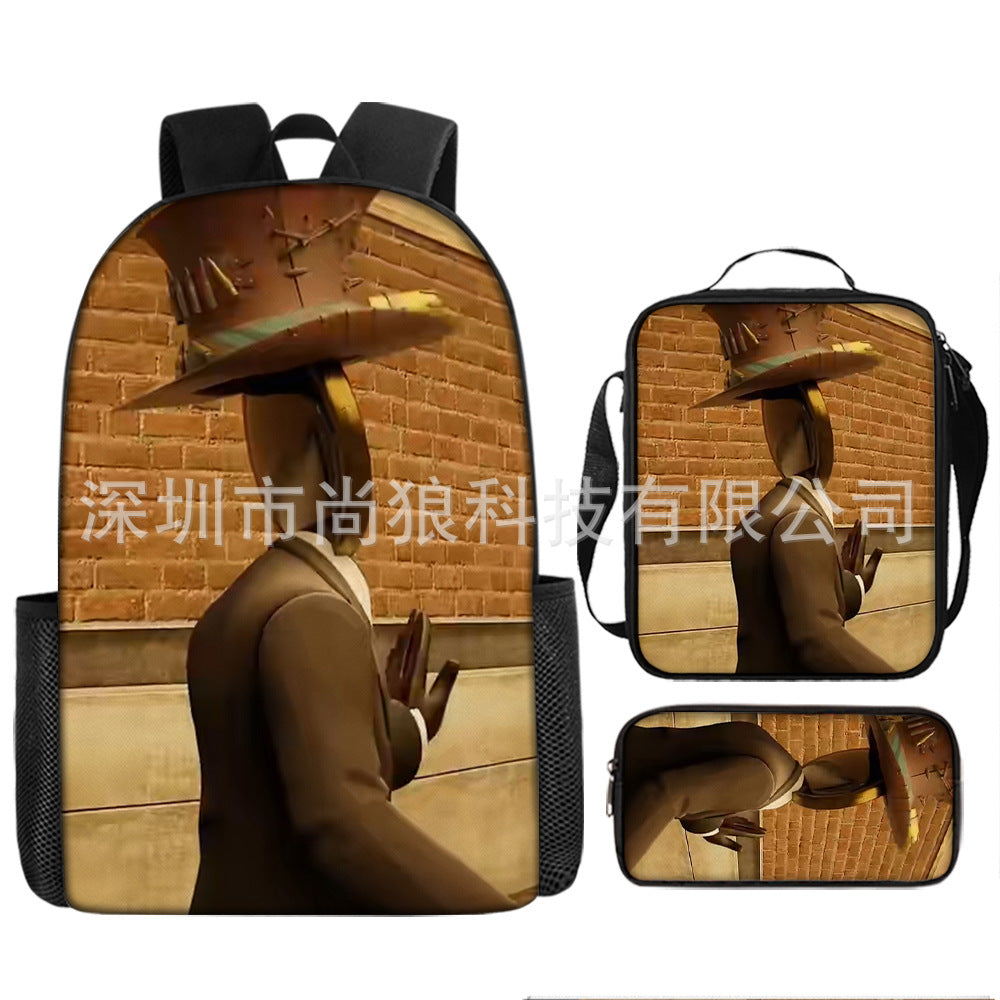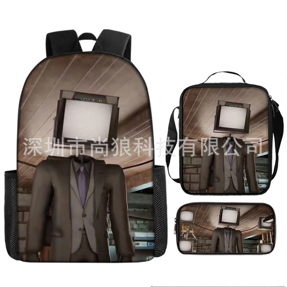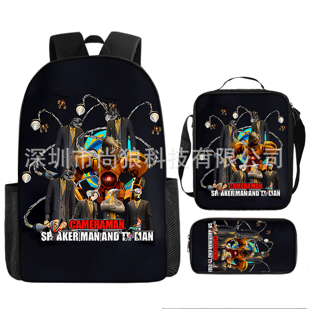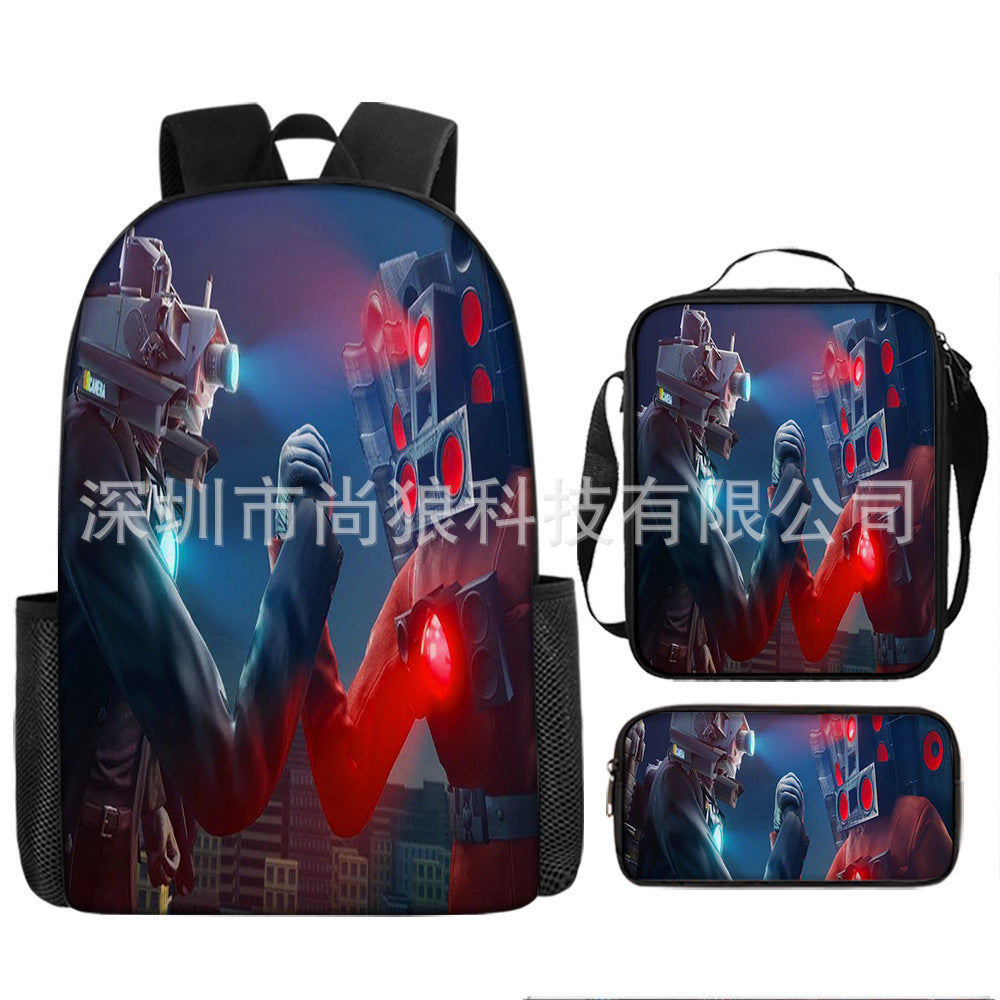 Titan ClockMan TV Man Skibidi 厕所 儿童背包三件套