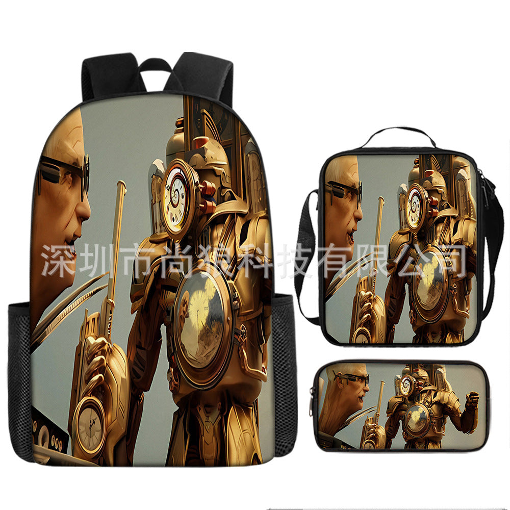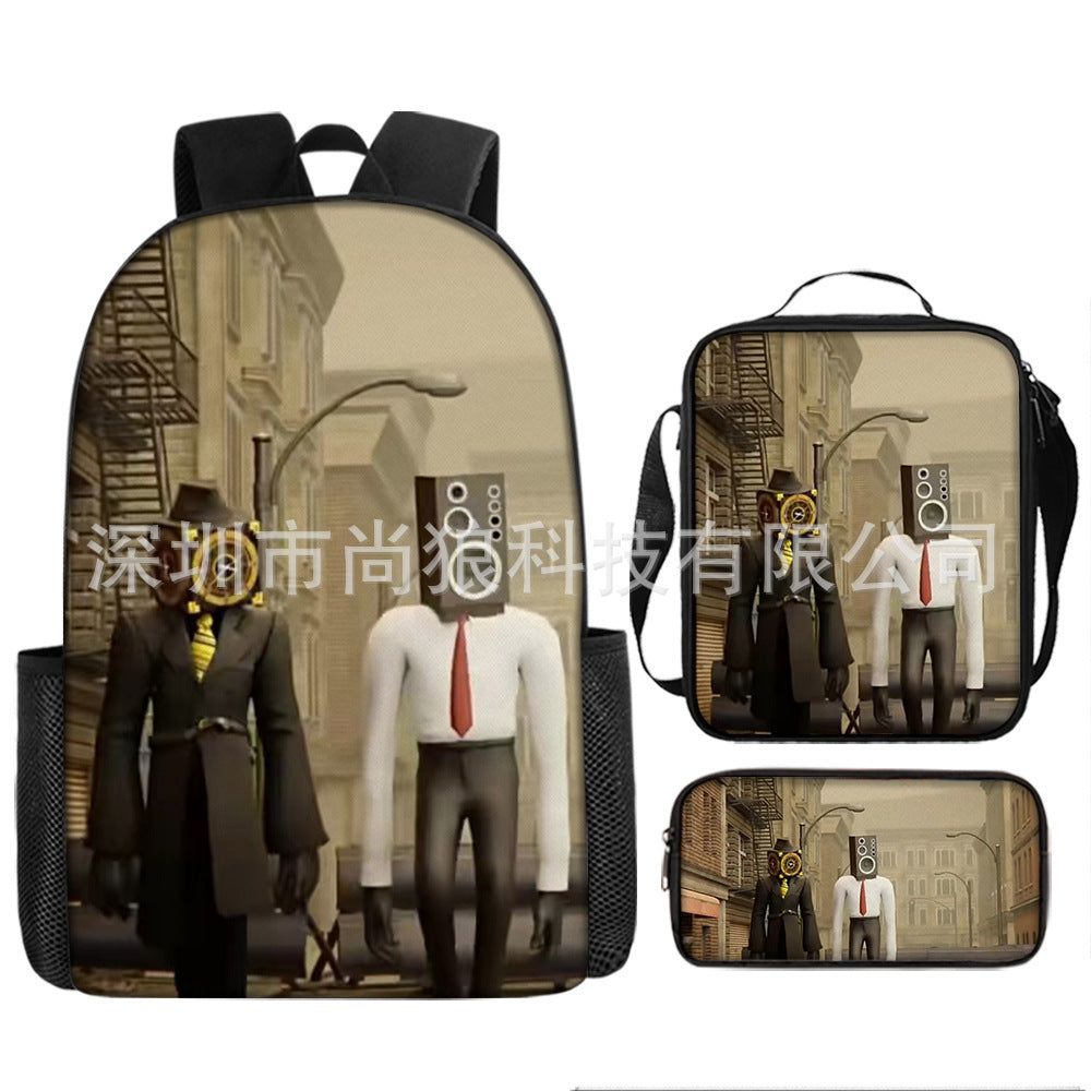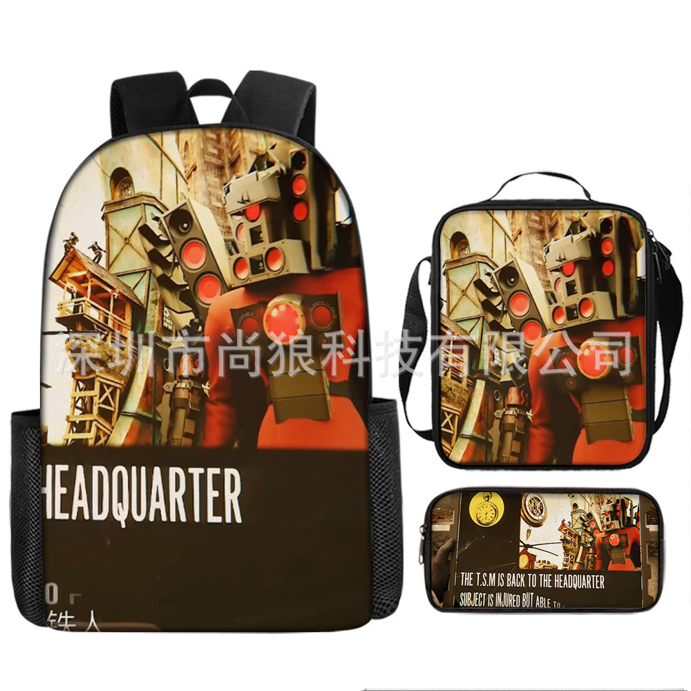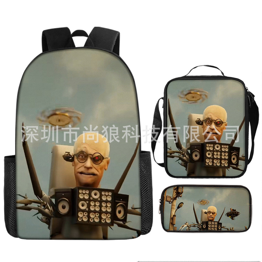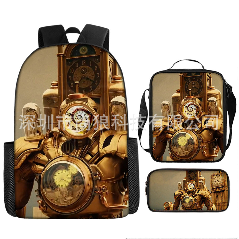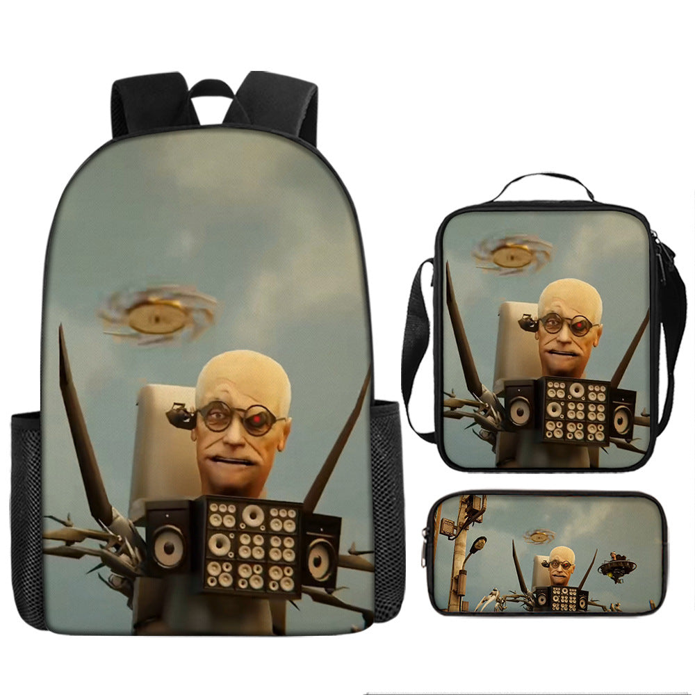 Titan ClockMan TV Man Skibidi 厕所 儿童背包三件套