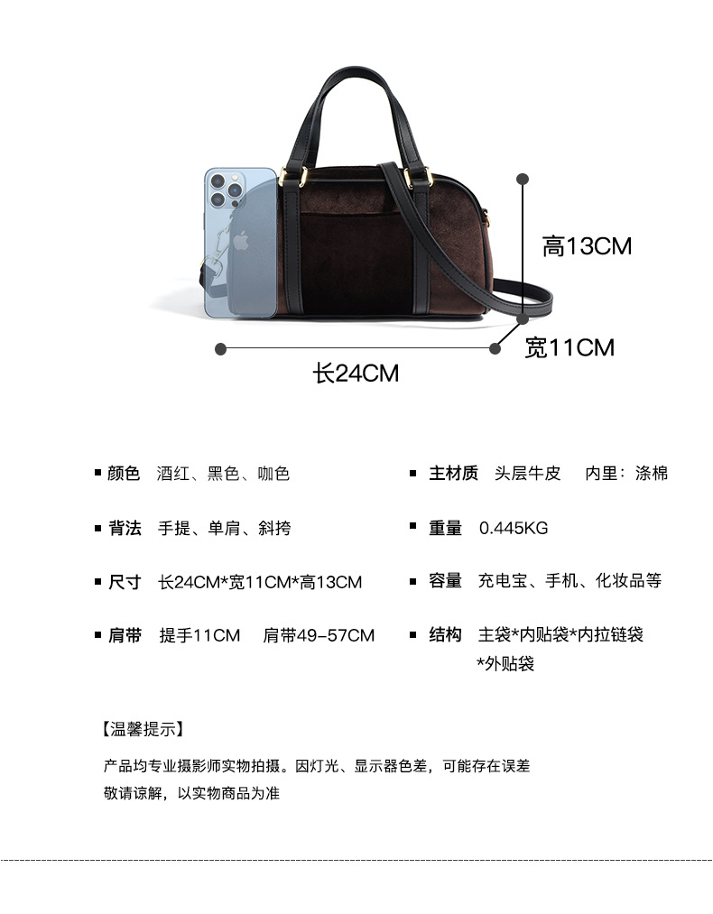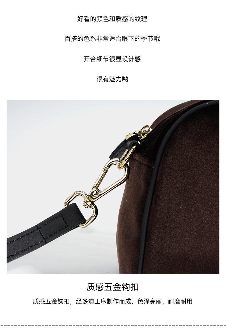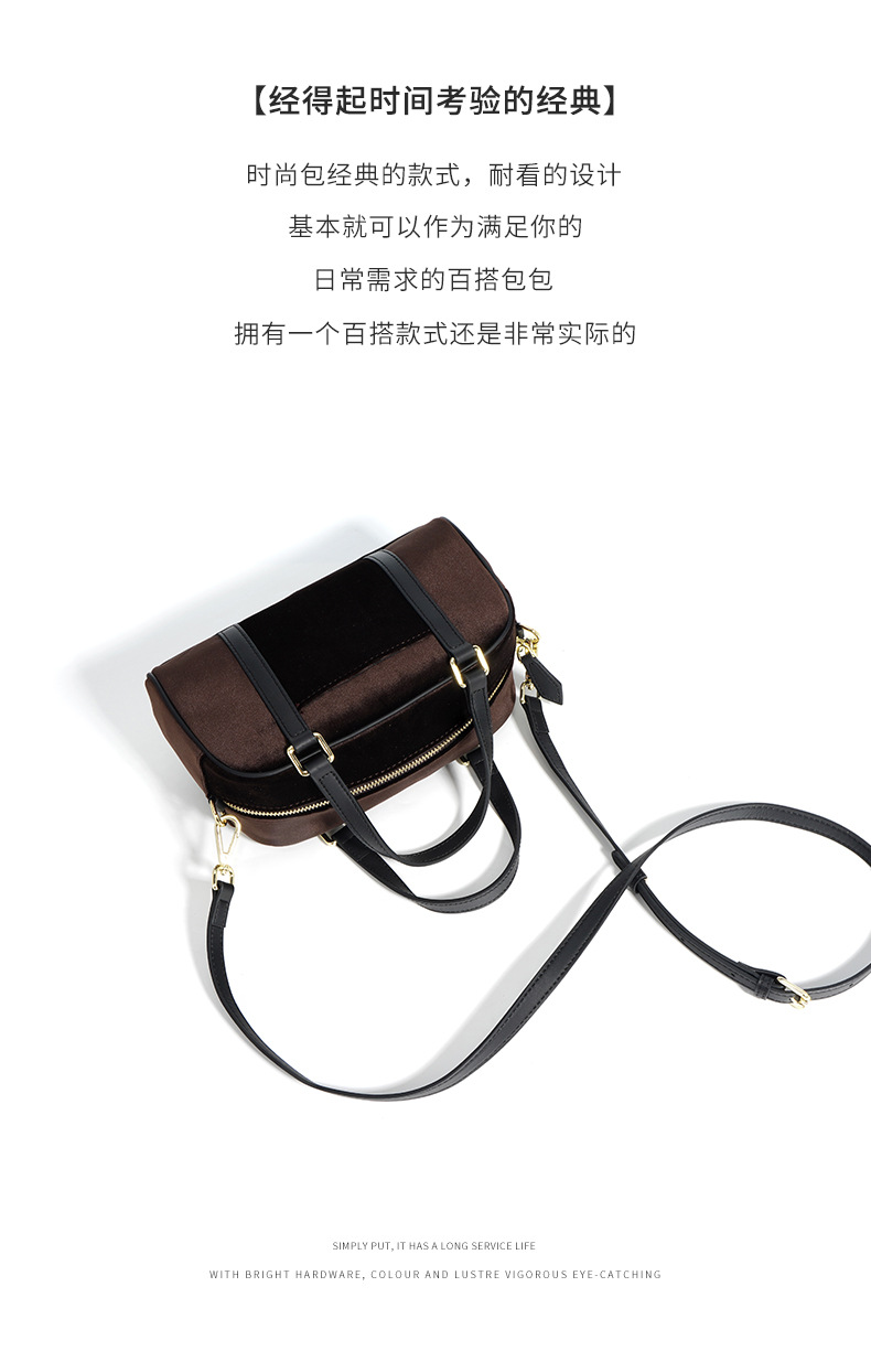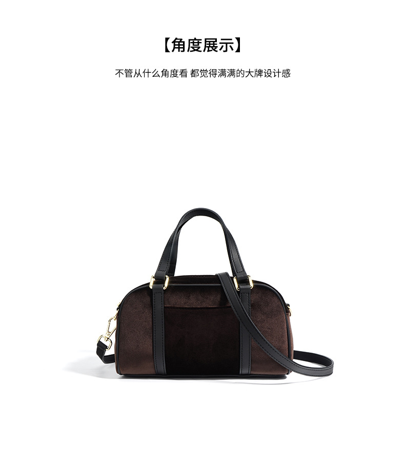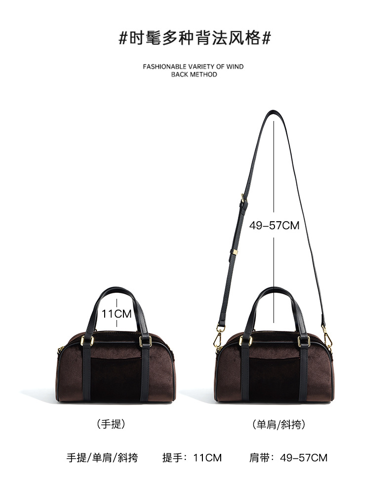 A unique blend of luxury and style, this velvet and genuine leather bowling bag features a niche design and high-end craftsmanship. Perfect for casual outings or evening events.
