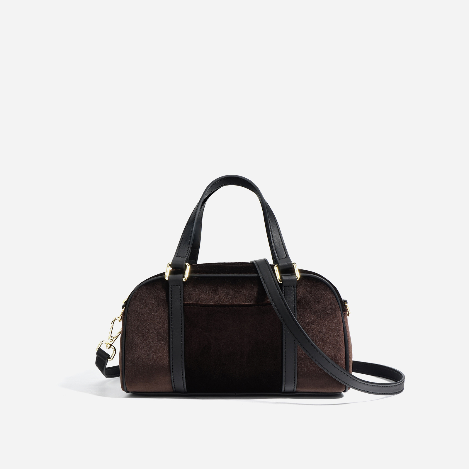 Velvet & Genuine Leather Bowling Crossbody Bag