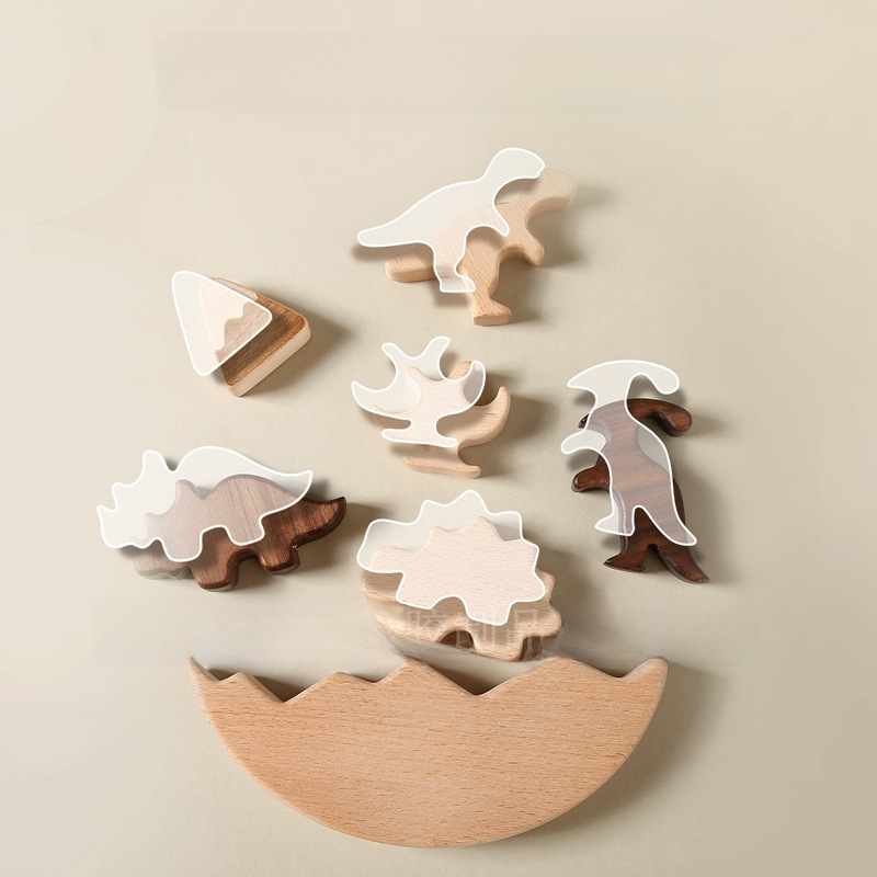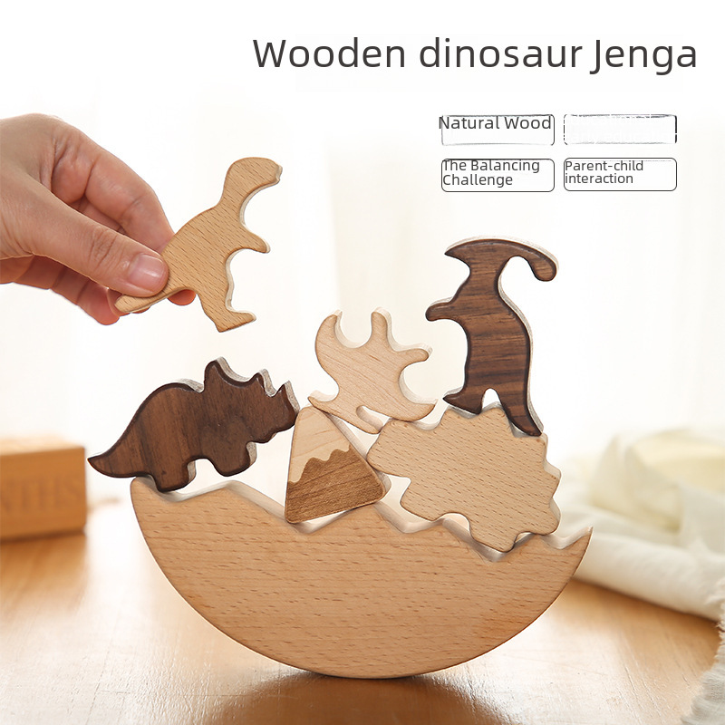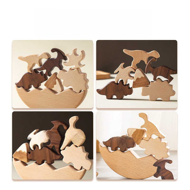 Wooden dinosaur stacking high building block toy, multi-color dinosaur stacking music, baby balance beam stacking toy