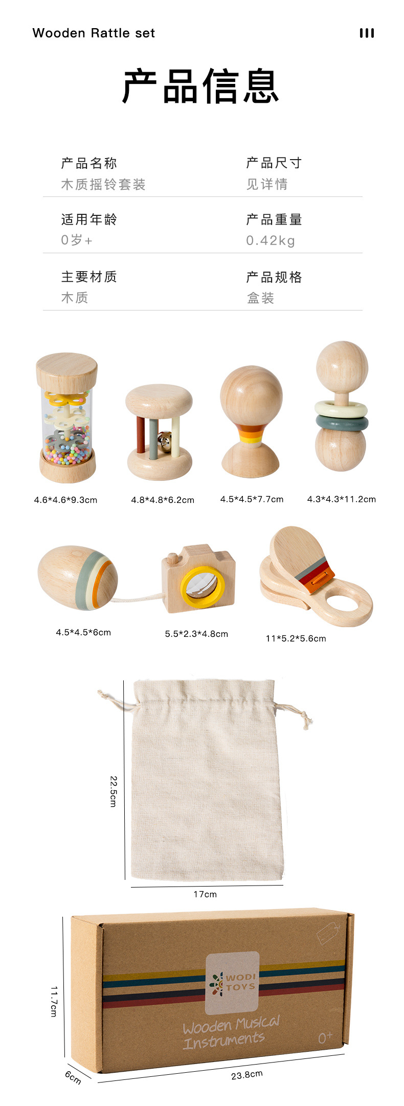 Wooden Orff musical instrument set for infants, young children, cage bells, sand hammers, small horns, soundboards, soothing bed bells, early education toys